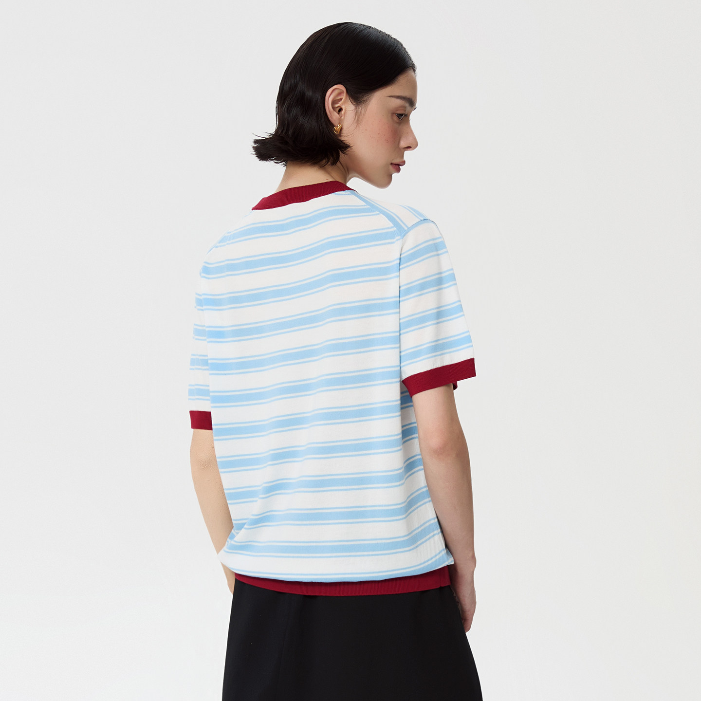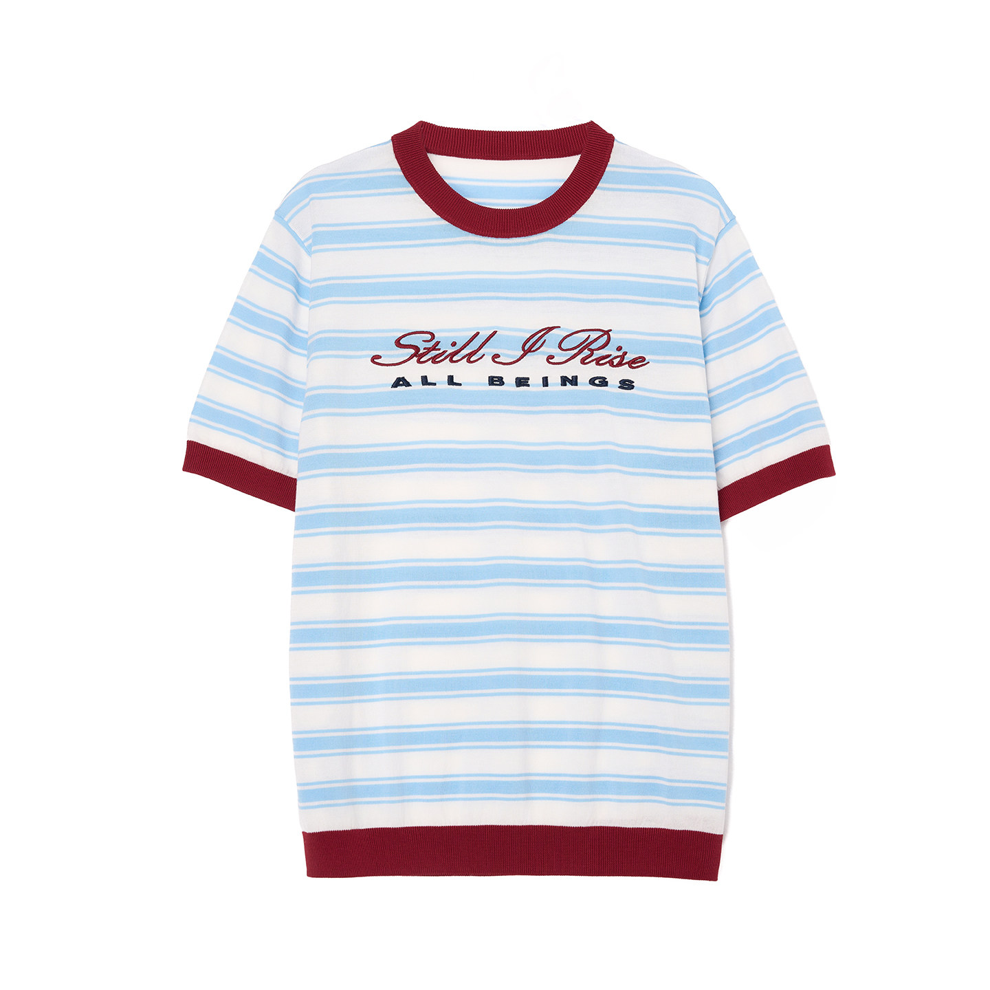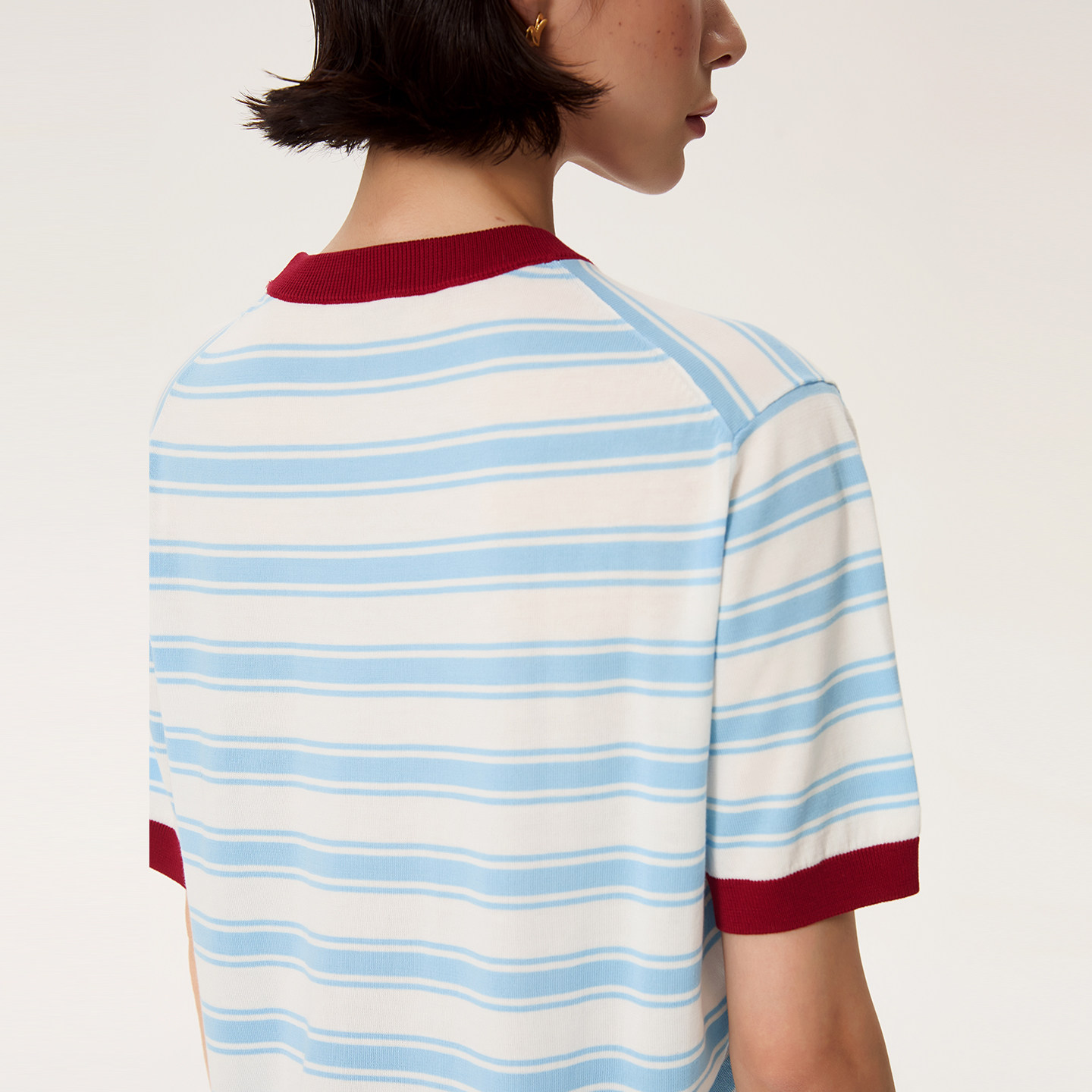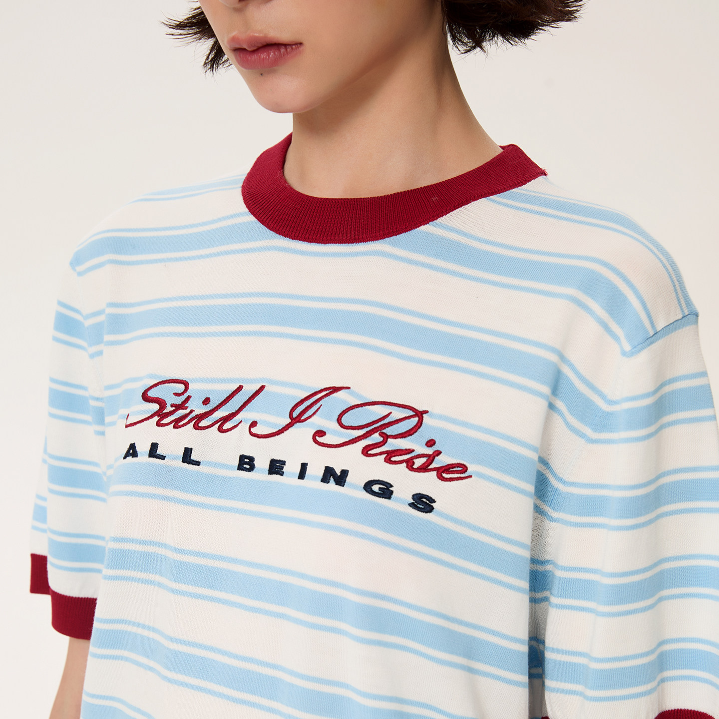 薄款 ALL 女夏季 T恤衫 BEINGS25SS复古蓝红条纹刺绣圆领针织短袖