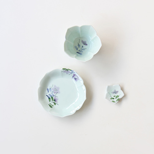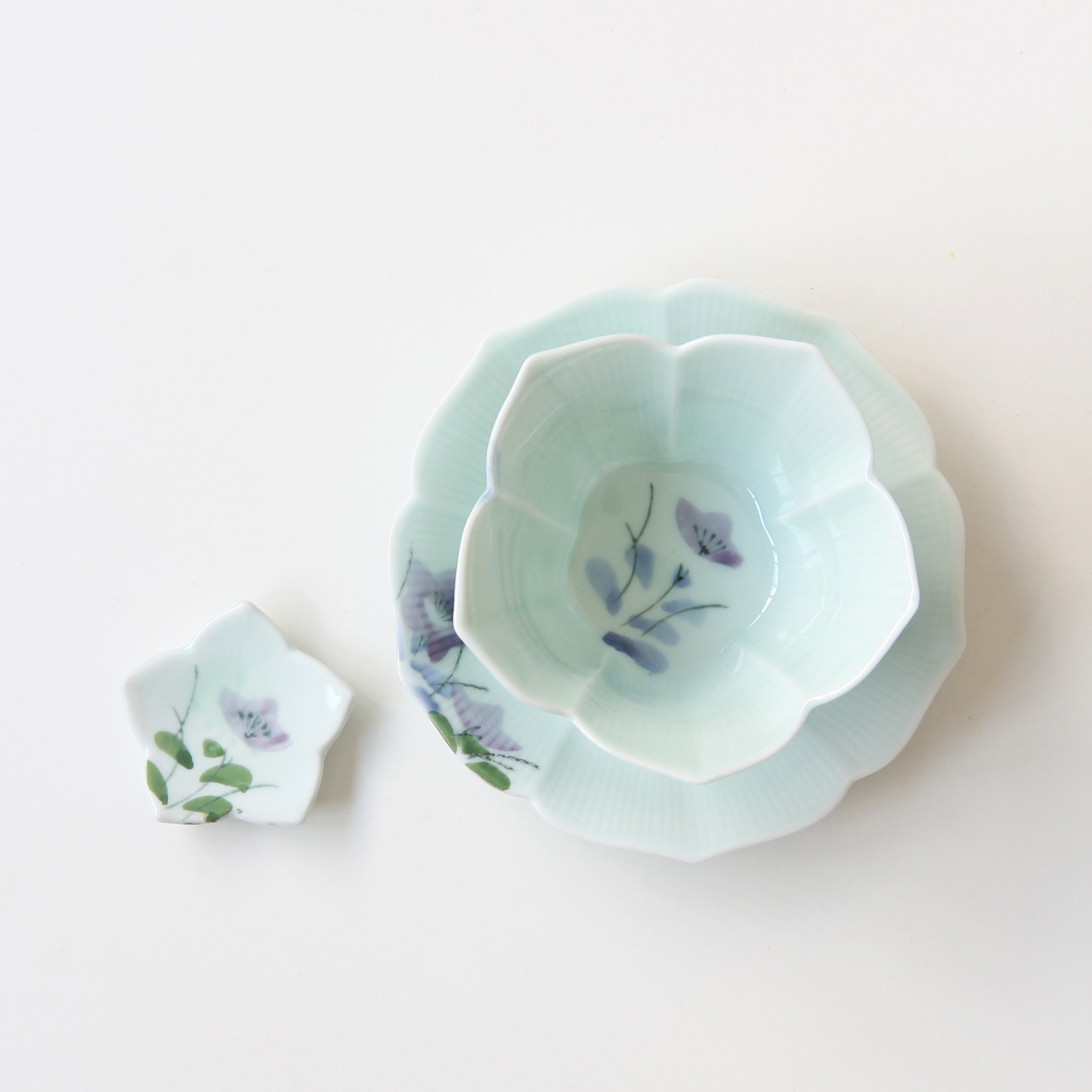 美浓烧日本进口陶瓷餐具小蓝芽饭碗寿司菜盘子碟拉面汤碗 自营