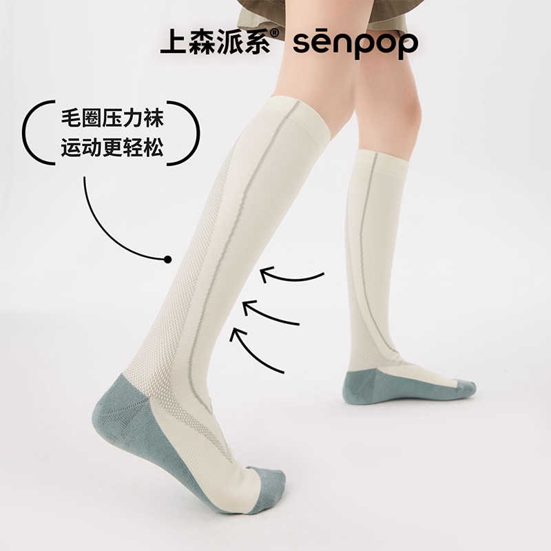 上森绿色网球袜压力袜小腿袜压缩袜运动跑步羽毛球骑行瑜伽长筒袜