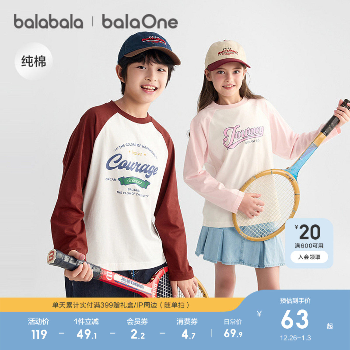 男女童插肩袖 t恤2025春秋装 速干纯棉上衣潮 儿童长袖 巴拉巴拉童装