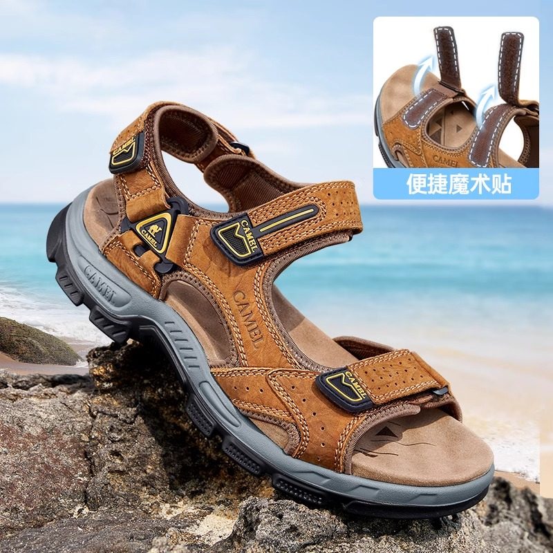 运动休闲凉鞋 夏季 男士 真皮时尚 骆驼男鞋 魔术贴户外沙滩鞋 2024新款