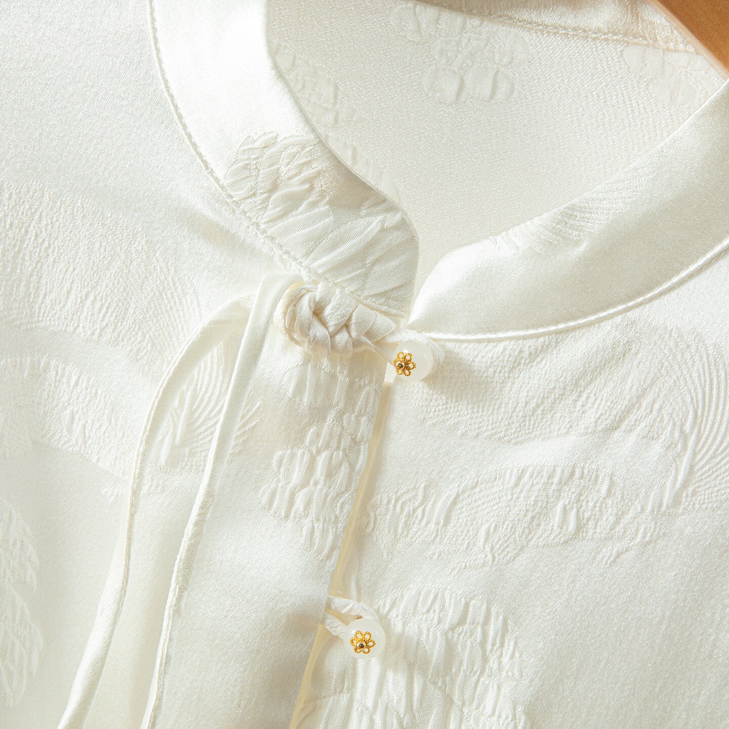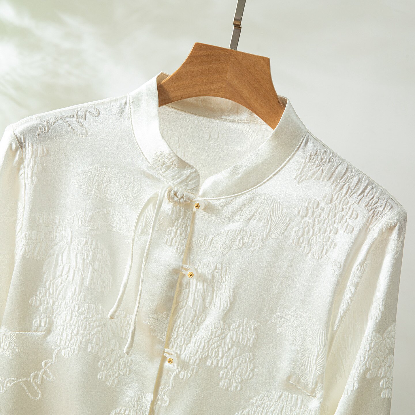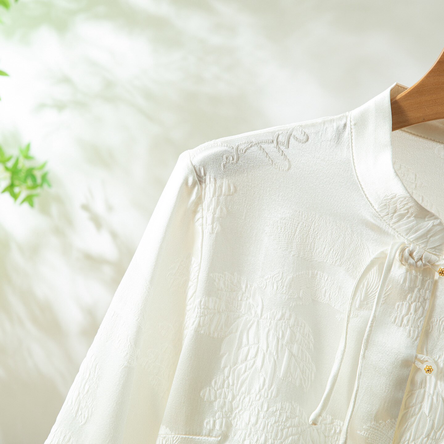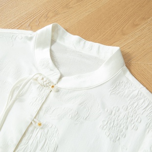 重磅桑蚕丝冠乐缎轻国风中式 女气质提花流苏盘扣上衣 立领设计衬衫