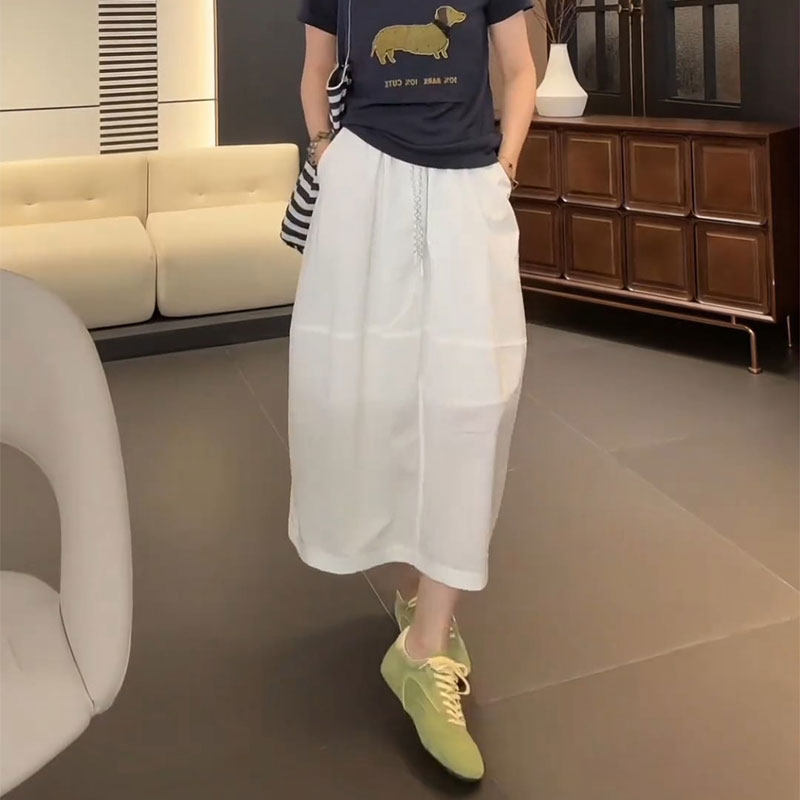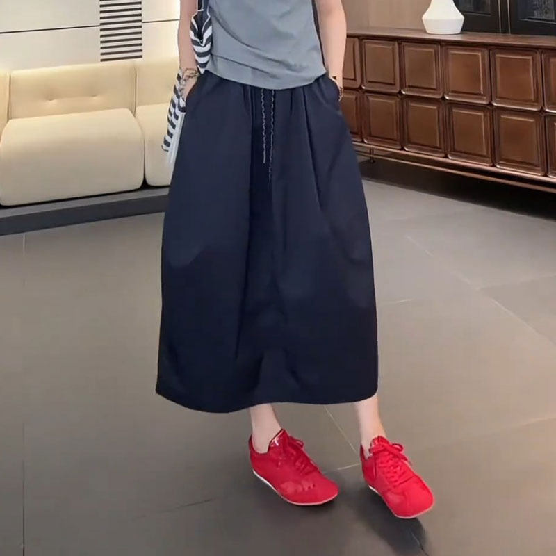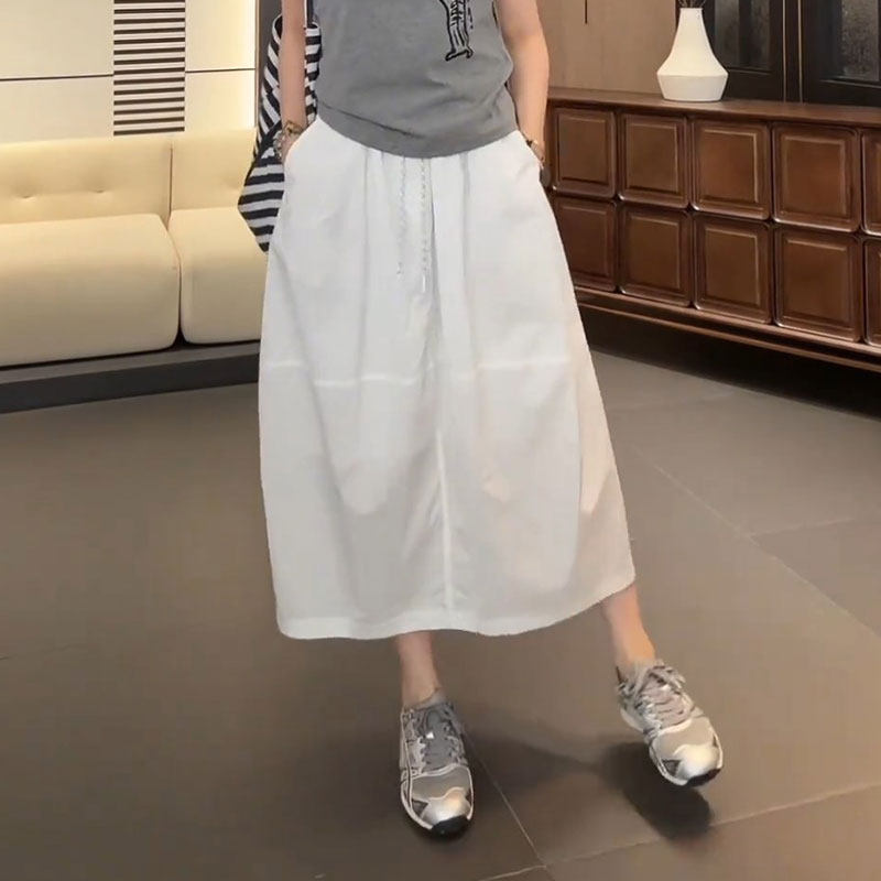 高腰显瘦A字裙宽松中长款 半身裙女夏2026新款 灯笼裙 抽绳工装 美式