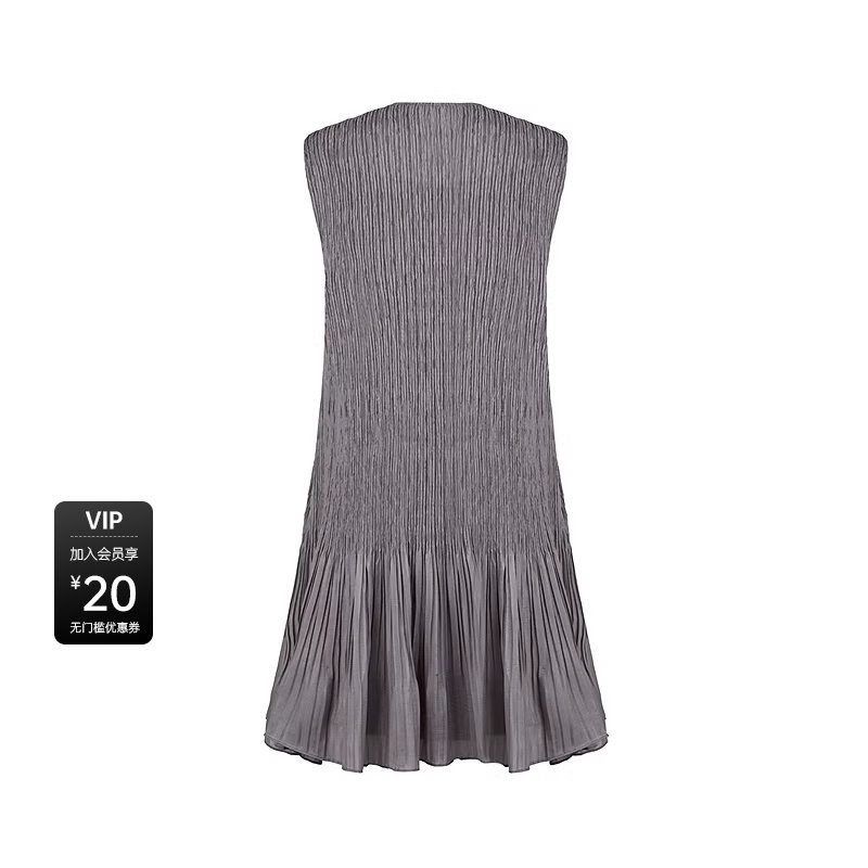 圆领褶皱两件套无袖 时尚 连衣裙S25281256 女装 sdeer圣迪奥夏装