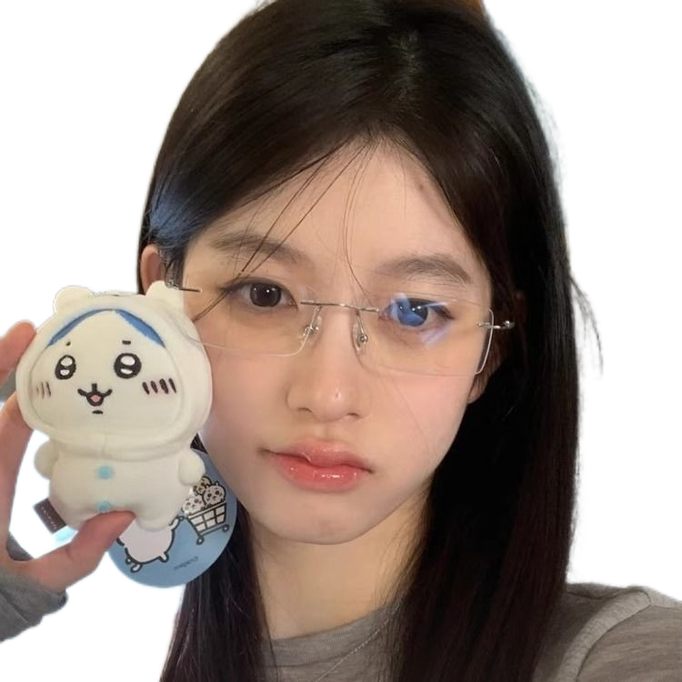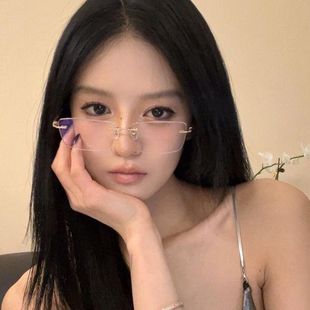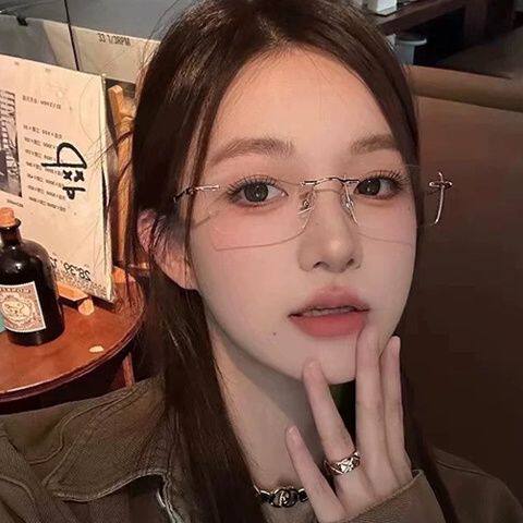 超轻羽感纯钛无框近视眼镜女可配度数斯文金丝纯欲方框高智平光镜