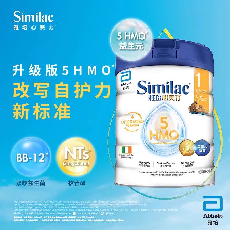 5hmo1段0 心美力升级版 雅培港版 6月婴幼儿母乳配方营养粉 自营