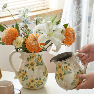 创意手提美式 饰品田园风 乡村冰裂奶壶陶瓷花瓶水养玫瑰插花摆件装