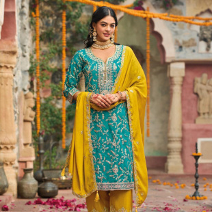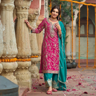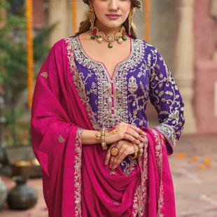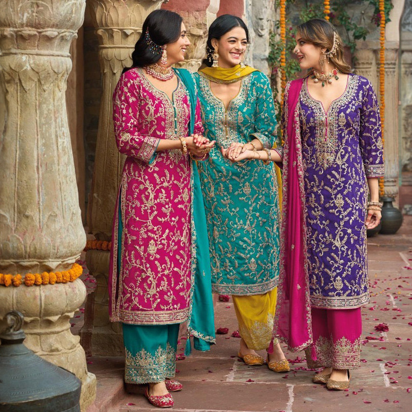 印度进口传统服饰重工金线刺绣套装 圆领chinon民族风旁遮比3件套