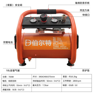 伯尔特锂电空压机10L家用便携式 打气泵无油空气压缩机木工气钉枪