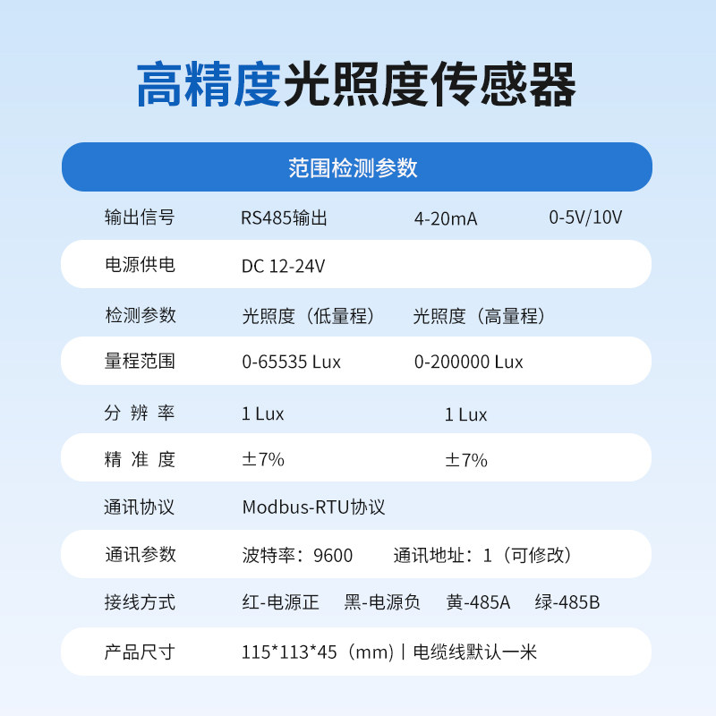 光照度传感器RS485温湿度变送器日照度计大气压农业大棚养殖4 20m