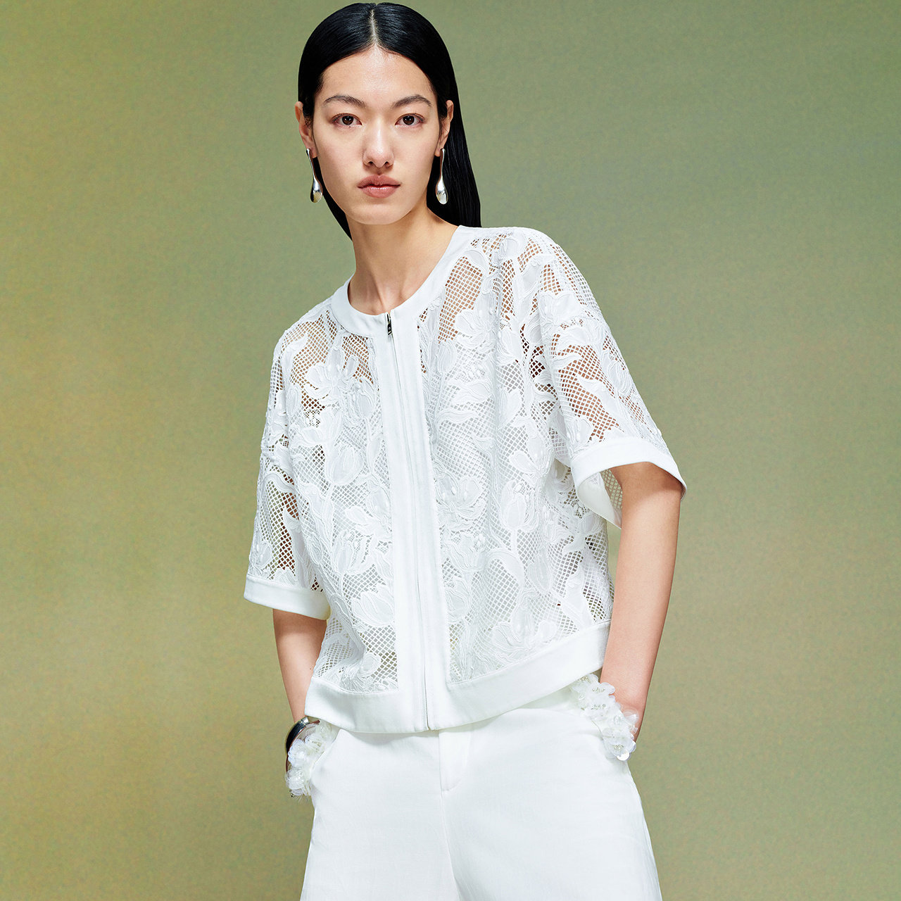 IMM尹默夏有光花瑶绉绣花面料气质宽松直身短外套上衣女