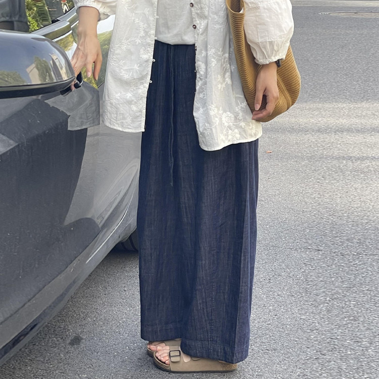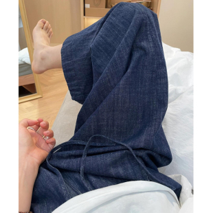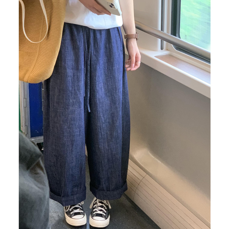 胖妹妹高腰宽松显瘦直筒九分休闲裤 棉麻牛仔阔腿裤 薄款 夏季 女大码