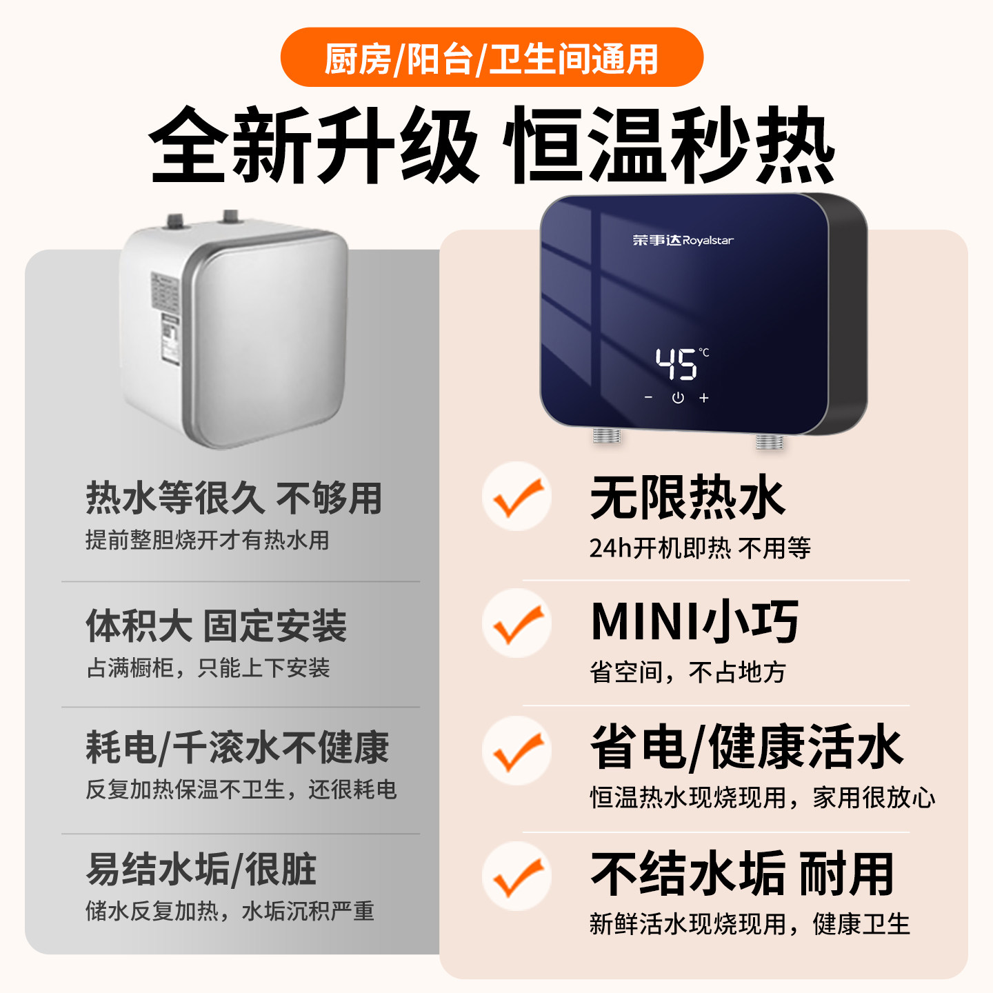 荣事达小厨宝热水器即热式 小型厨房卫生间台下洗碗恒温家用热水宝