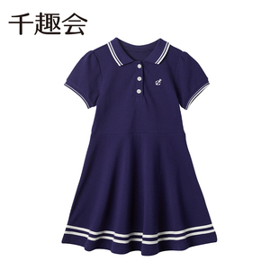 母女装 亲子装 珠地网眼棉质女童polo连衣裙 夏款 千趣会童装