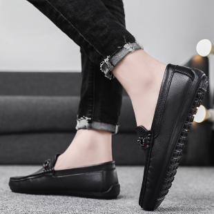 一脚蹬轻便开车软底工作潮鞋 豆豆男鞋 休闲皮鞋 英伦风商务男士 春季