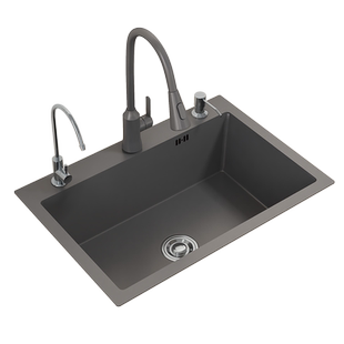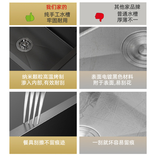悍高厨房纳米水槽手工单槽304不锈钢灰色洗菜盆洗碗盆大单盆套餐