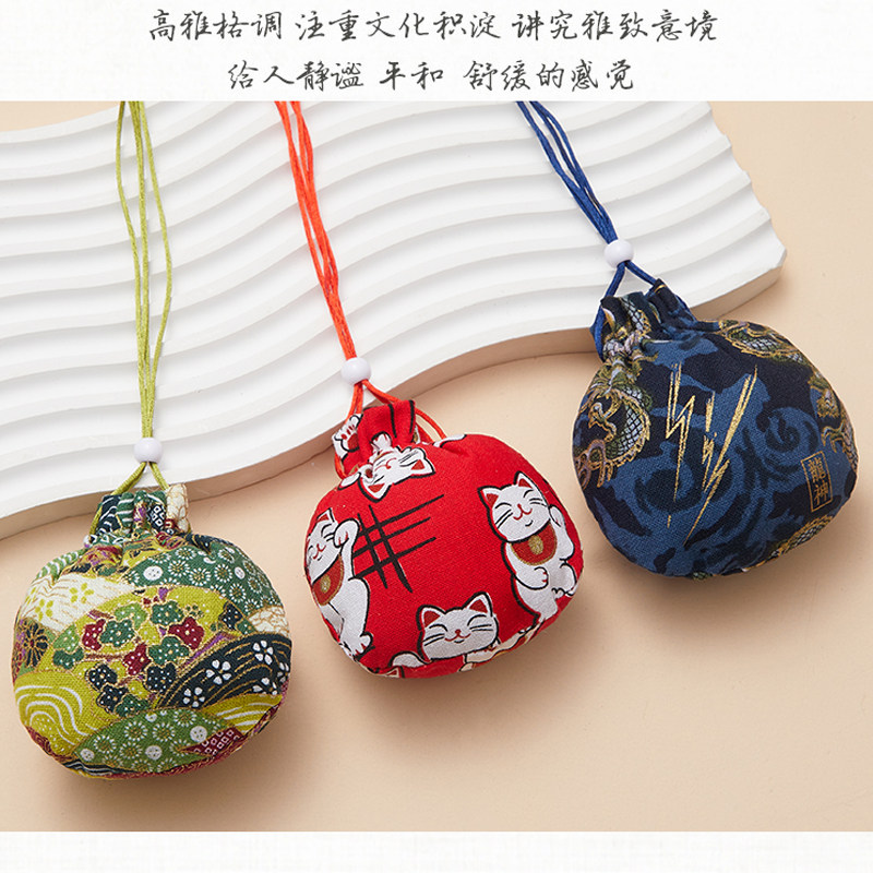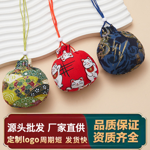 麻布包圆形挂脖儿童艾草驱蚊香包端午夏季 驱虫防蚊订制碎花圆包香