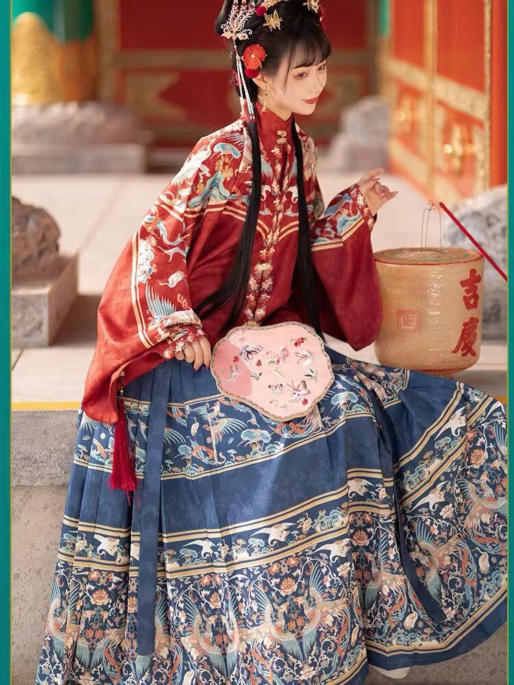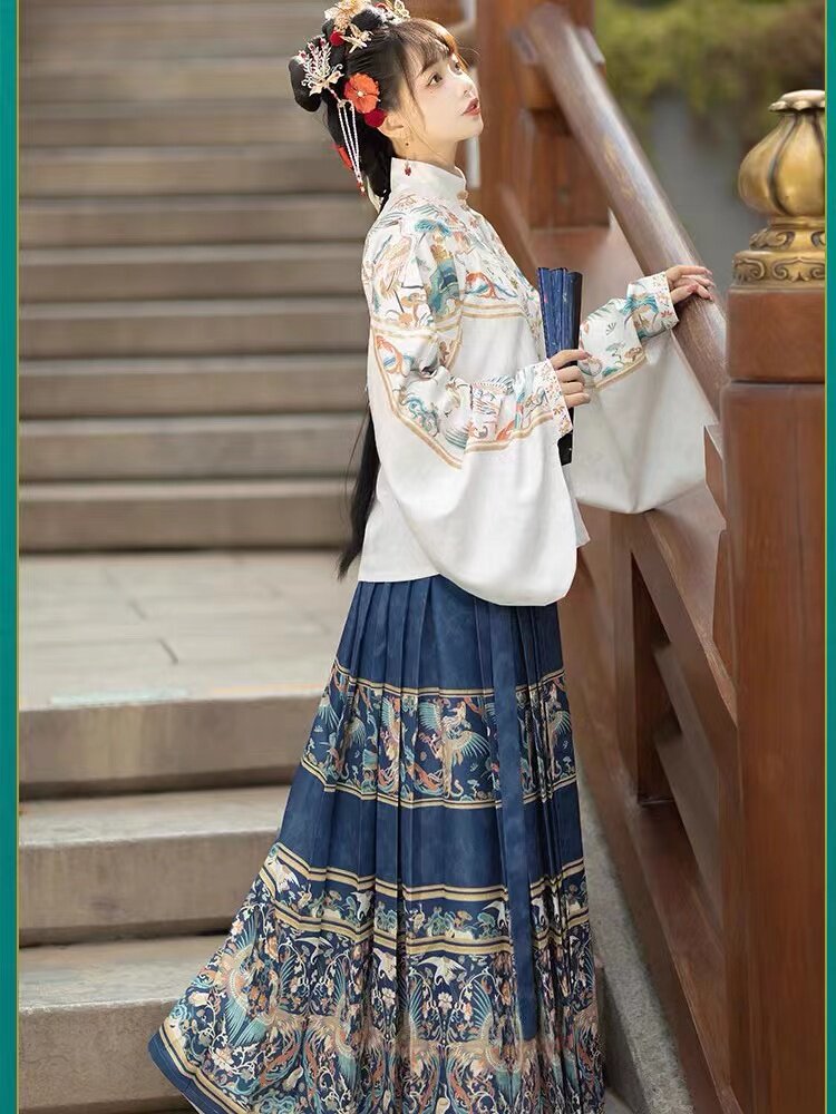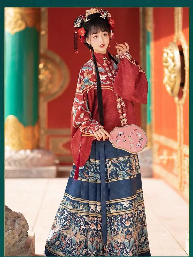 改良马面裙新中式 明制汉服女 琵琶袖 立领对襟短衫 春夏 凤来仪
