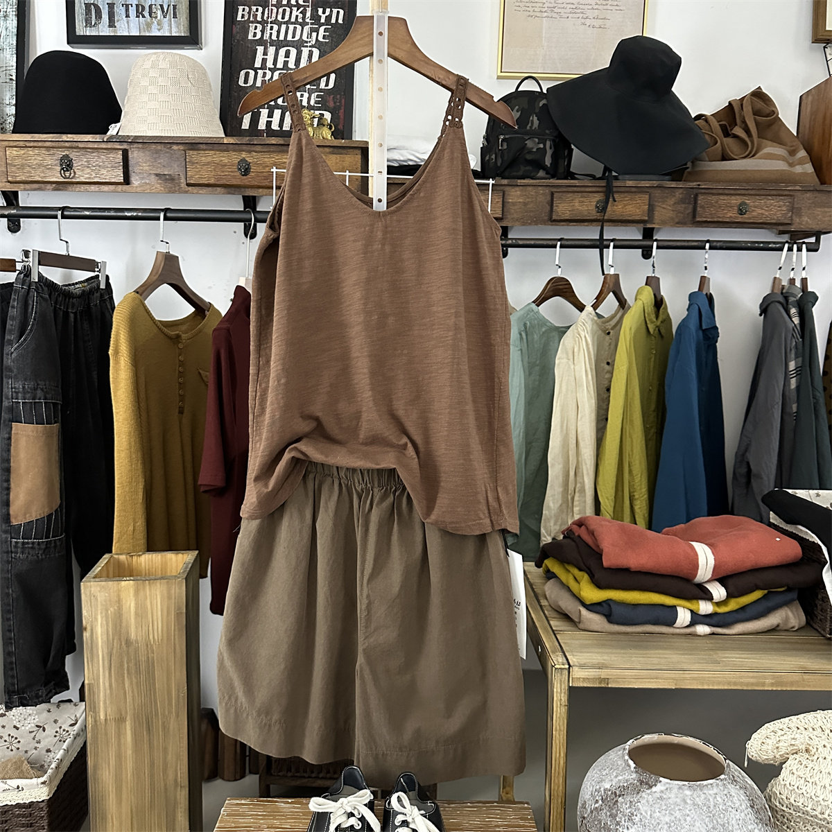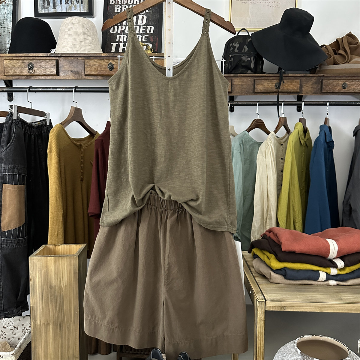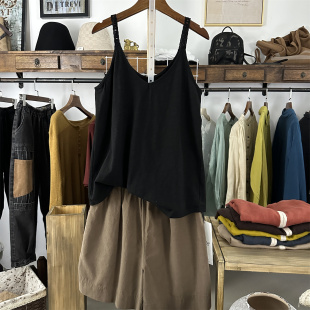无袖 夏季 竹节棉吊带背心女白色复古宽松短款 新款 上衣内搭 棉麻女装