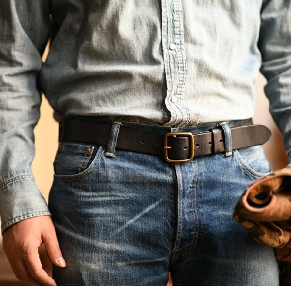 皮带男士 带 真皮休闲腰带头层牛皮商务牛仔简约皮带百搭加厚铜扣裤