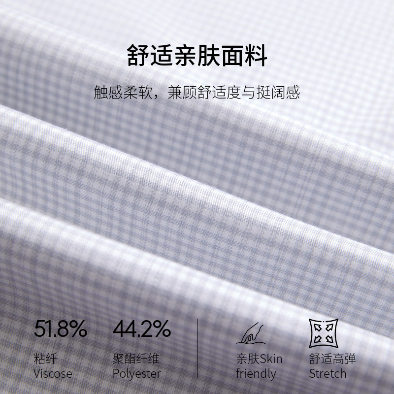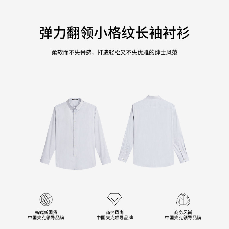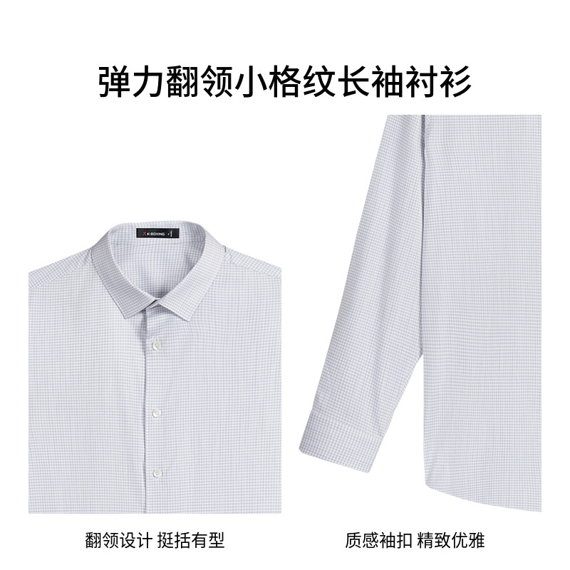 衬衫 劲霸男装 不易皱弹力翻领小格纹长袖 男士 BAXE1903 春季