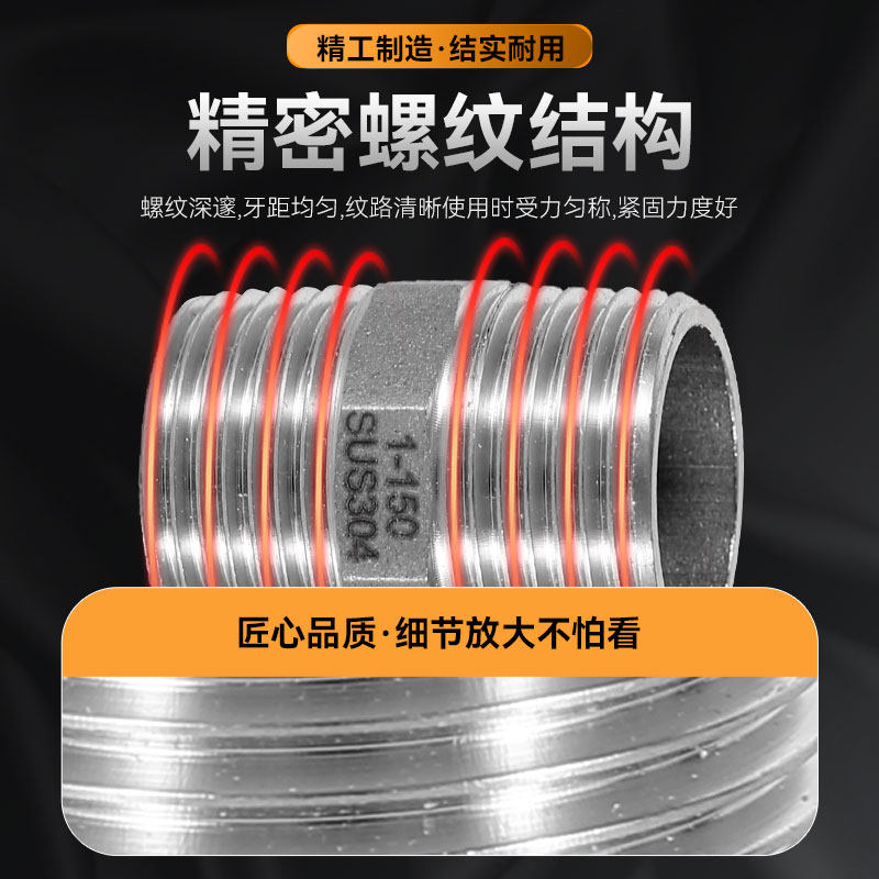 304不锈钢4分转6分1寸加厚内外丝直接对丝双内丝直接补芯接头配件