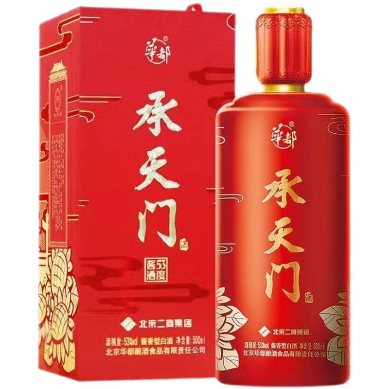 华都承天门庆典红43 北京纯粮酿造 53度500ml酱香型白酒婚宴送礼