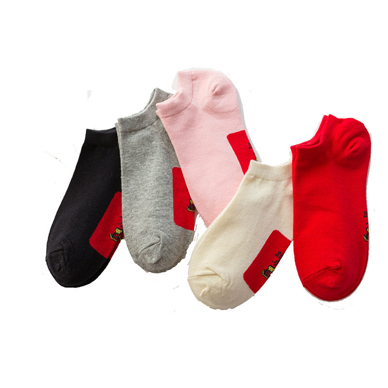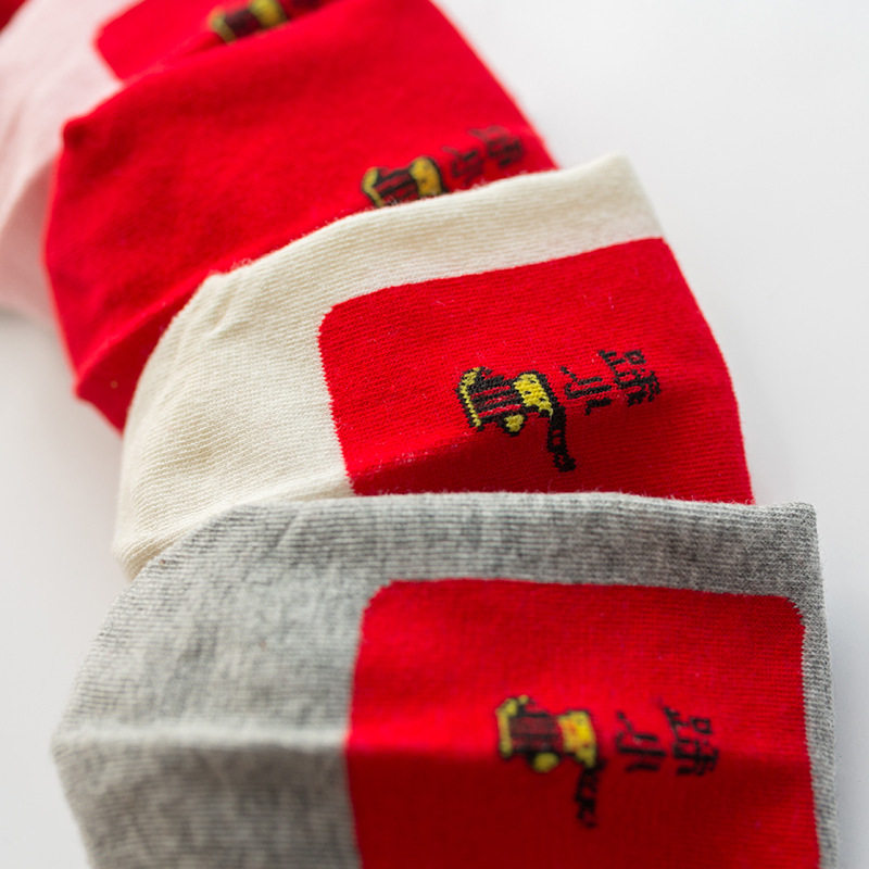踩网红袜小人短筒袜子红色女薄款 本命年属马年纯棉短袜船袜男