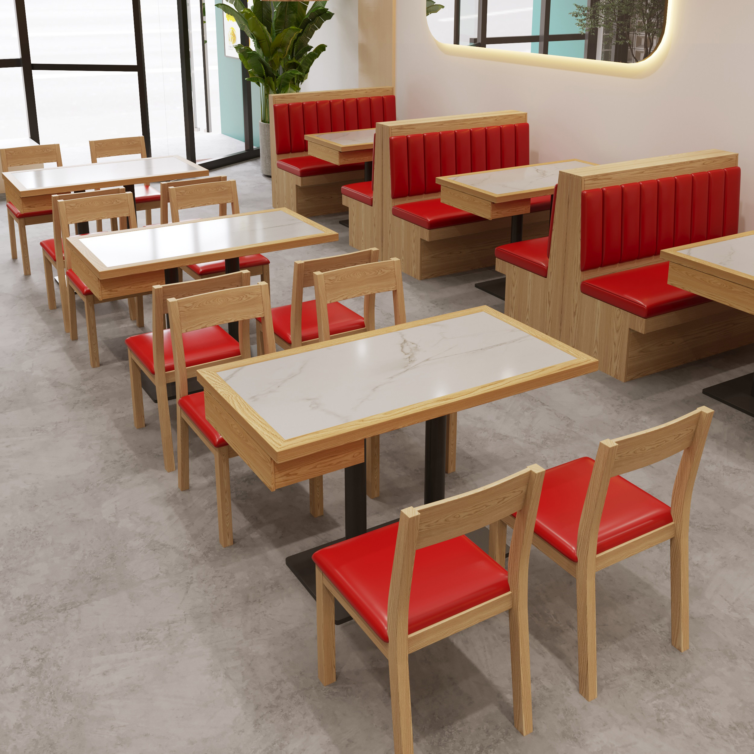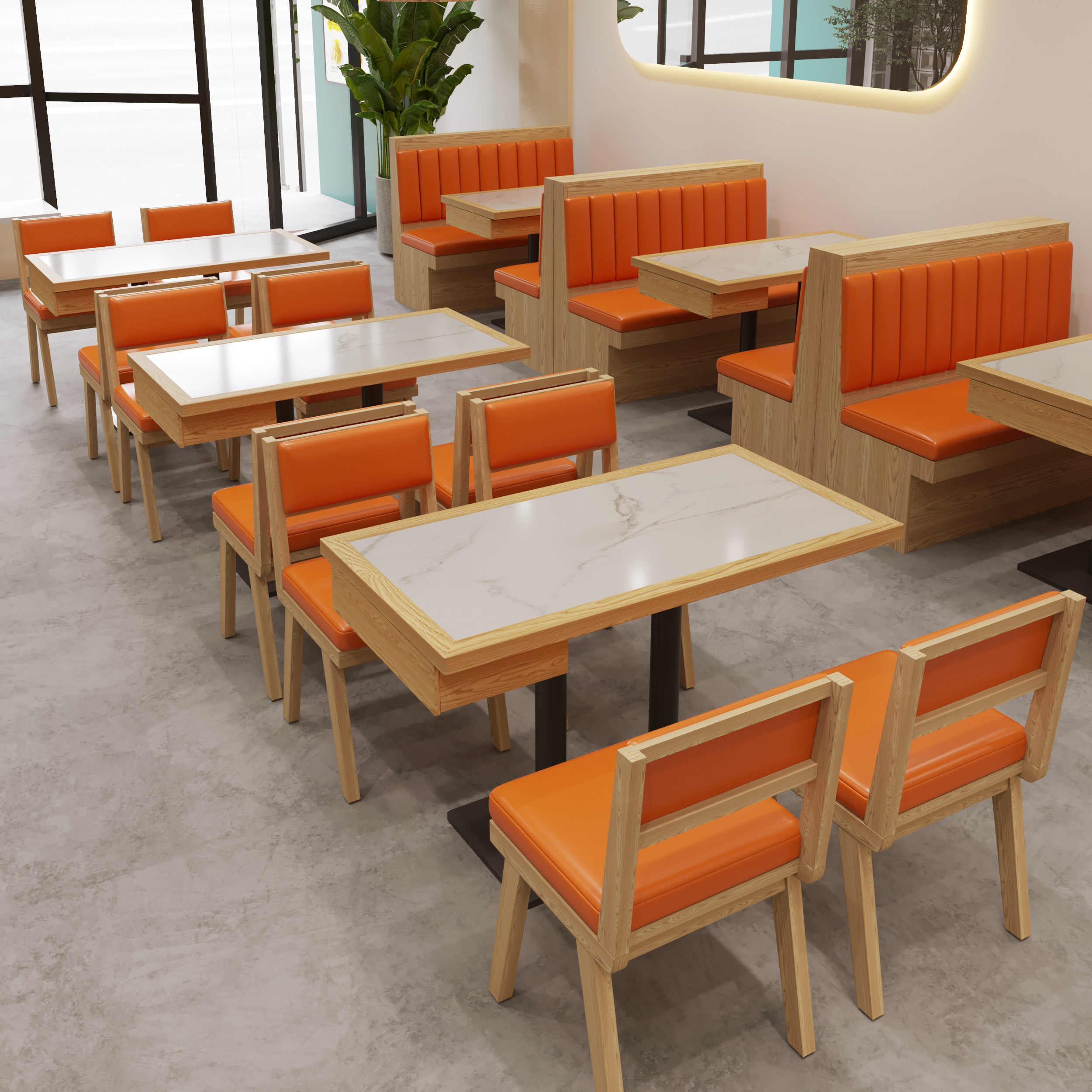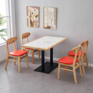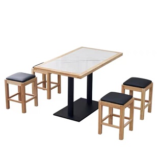 岩板实木快餐桌椅商用火锅小吃店麻辣烫饭店面馆简约餐饮桌椅组合