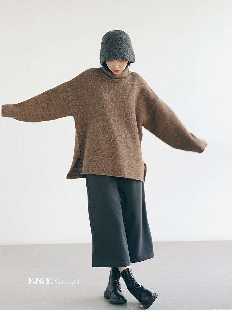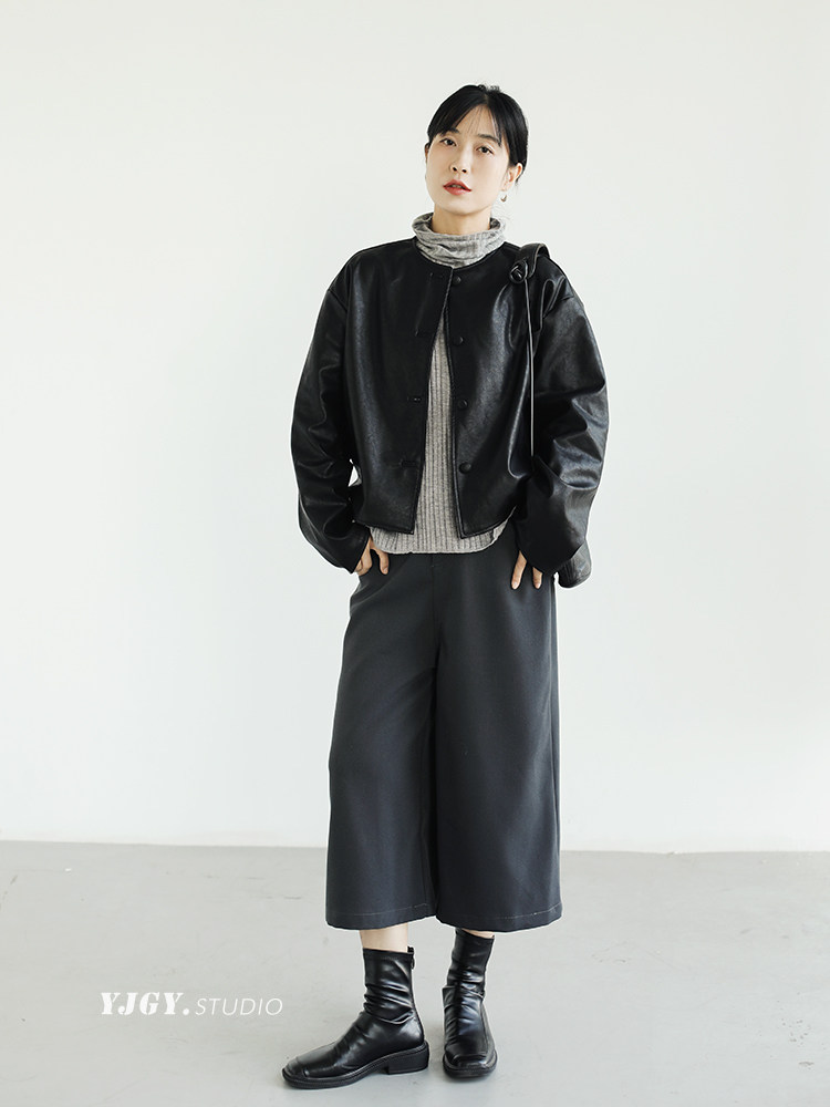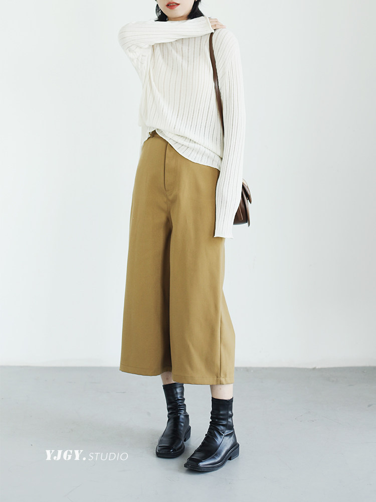 百搭设计感直筒裤 印计谷羽 新款 女秋装 子F455 高腰显瘦阔腿七分裤