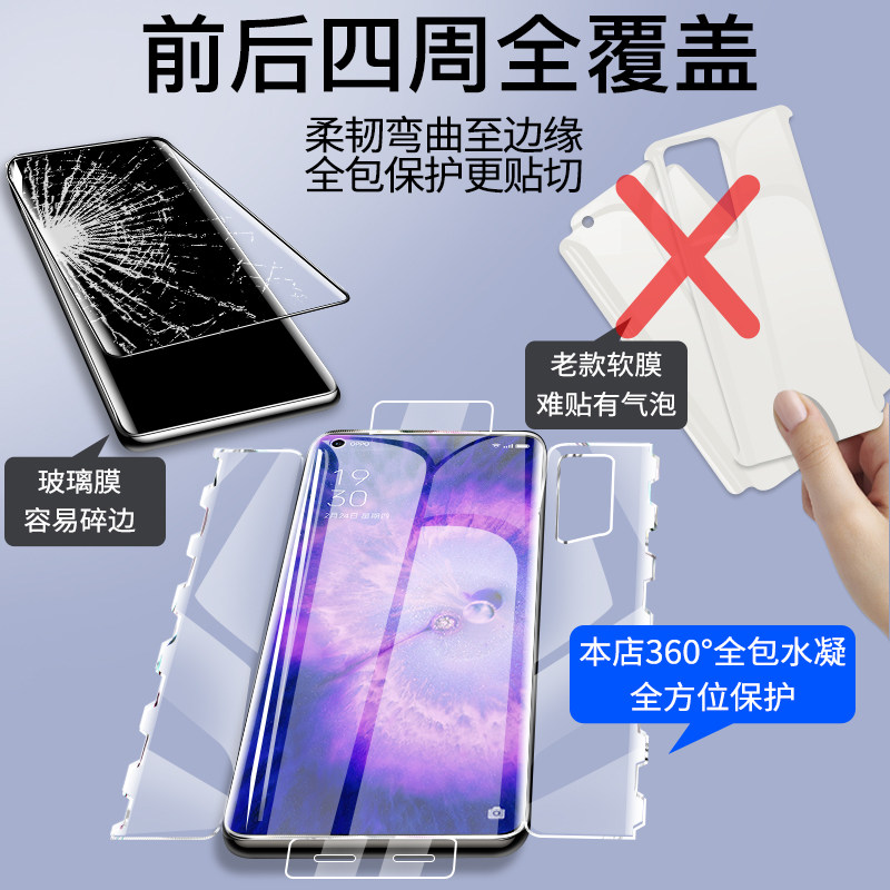 适用oppofindx5钢化水凝膜oppofindx5pro手机膜全屏覆盖oppo曲面全包蝴蝶软膜findx5por前后一体保护贴膜