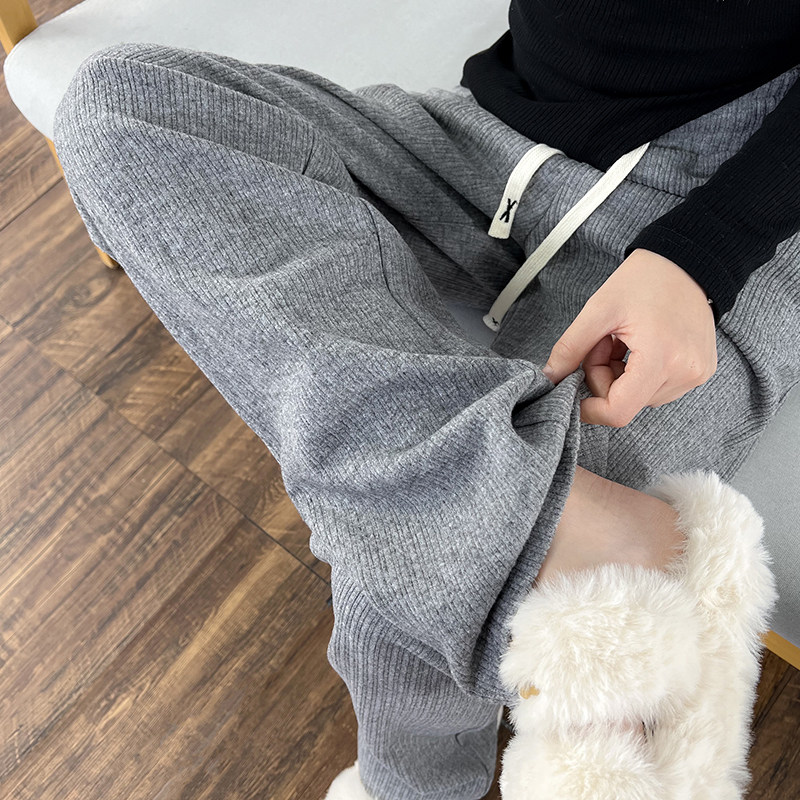 束脚休闲阔腿小个子卫裤 加绒棉裤 女秋冬2025新款 灰色羊羔绒运动裤