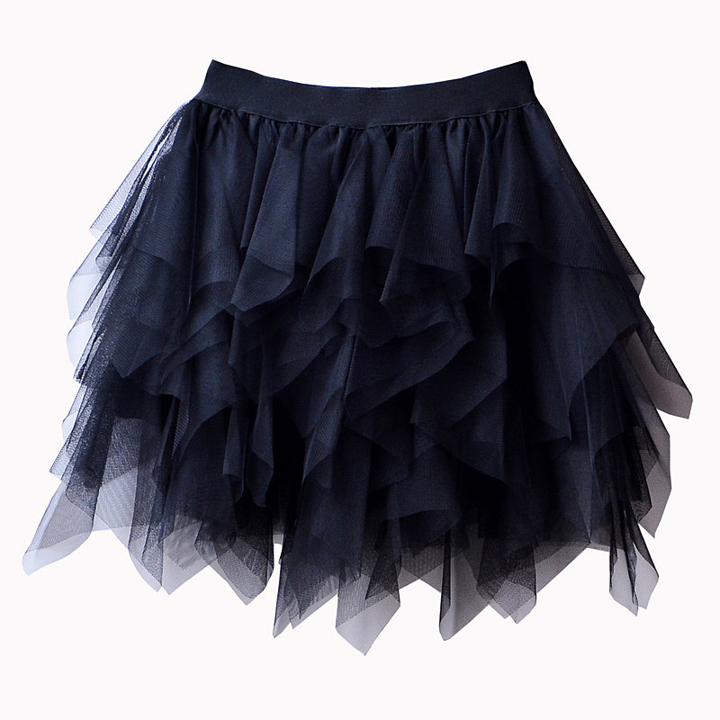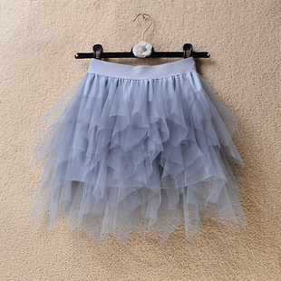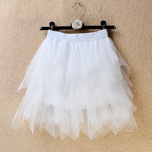 春夏季 蓬蓬蛋糕裙不规则层层网纱短裙小个子甜美半身裙女 高腰短款