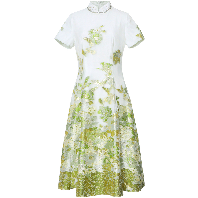 BBLLUUEE粉蓝衣橱改良旗袍风提花礼服裙女2025夏装 连衣裙 宴会短袖