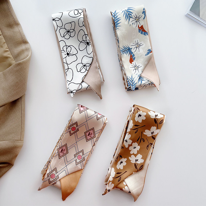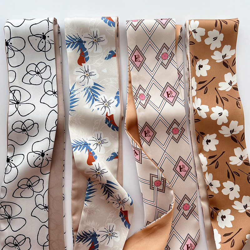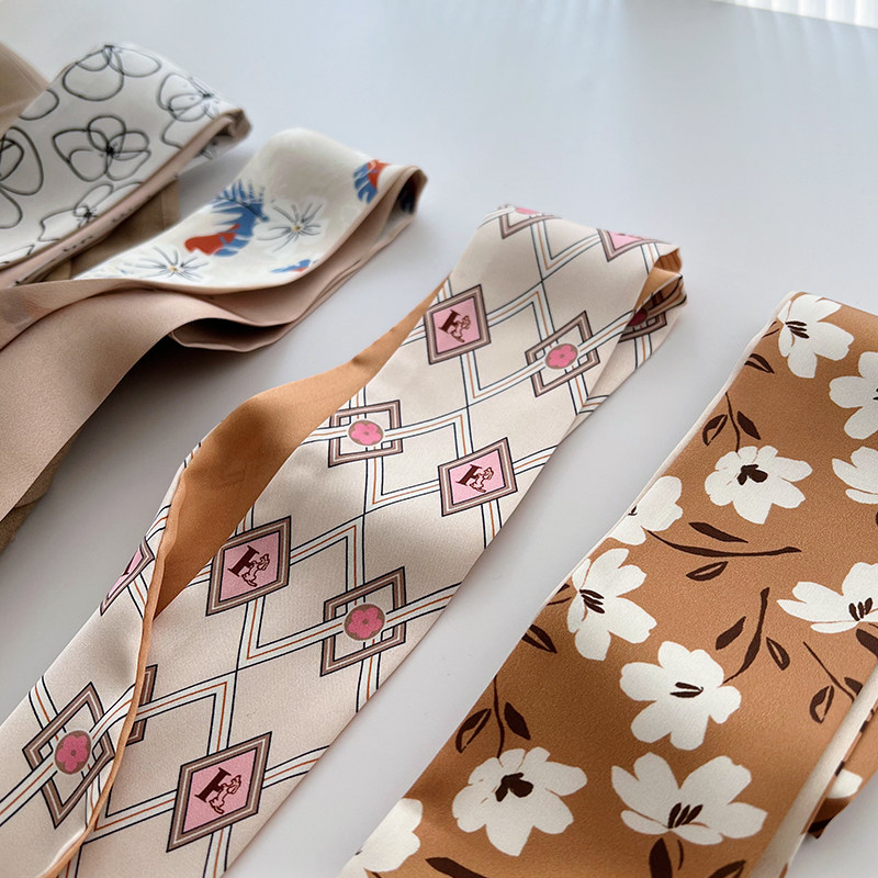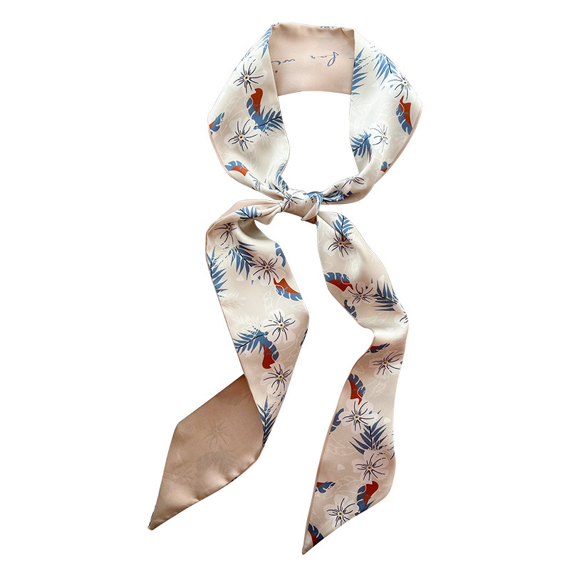 韩版 ins气质女细窄领巾 Beige色小丝巾飘带多功能春夏绑发时髦长款