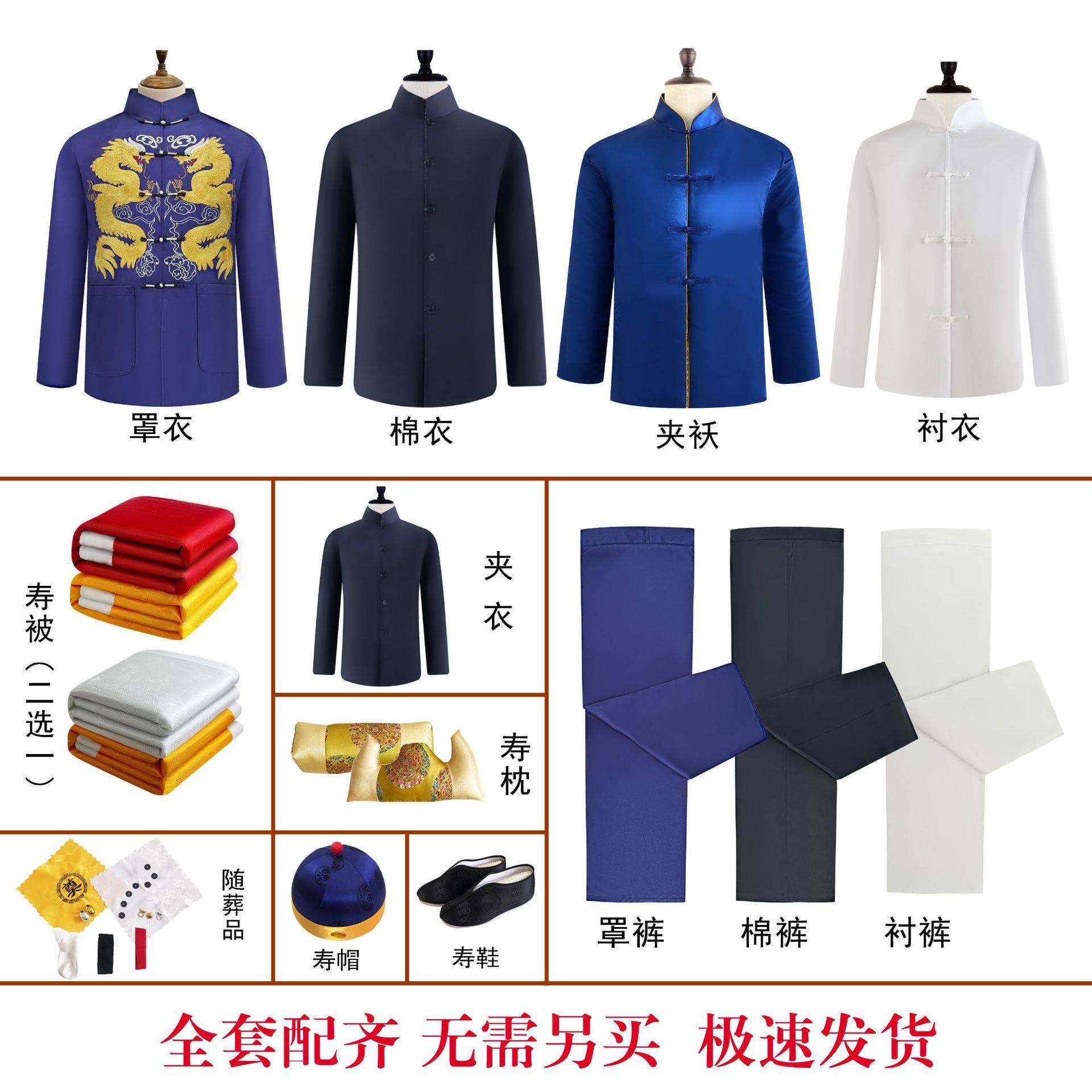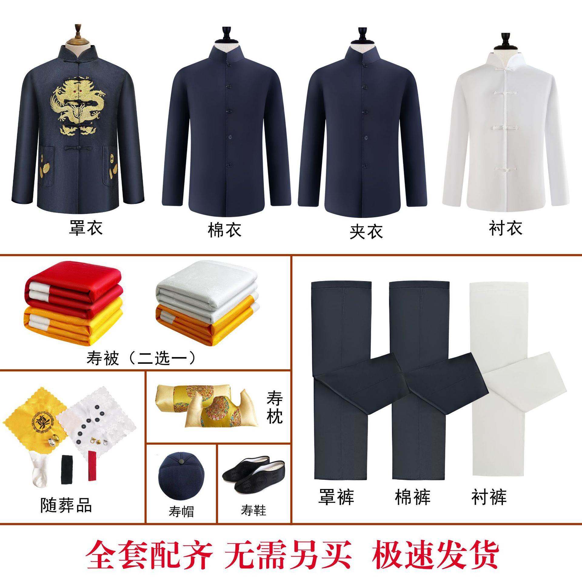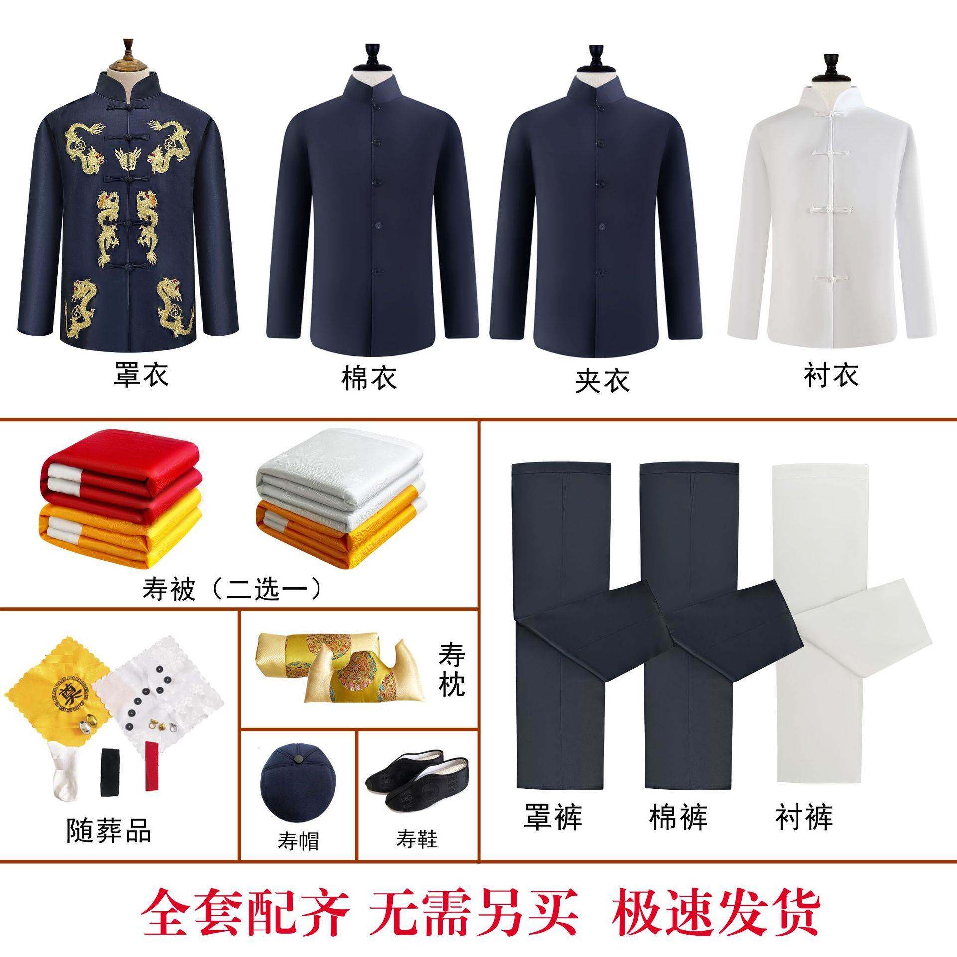 全套殡葬用品老人冲喜衣送老衣 国风棉现代大衣款 高档刺绣龙装 中式