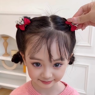 红色兔耳朵蝴蝶结发夹侧边刘海小抓夹女2024新款 发卡新年过年头饰