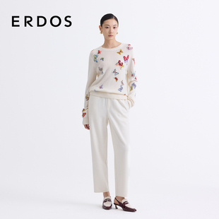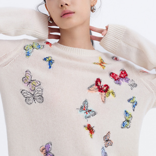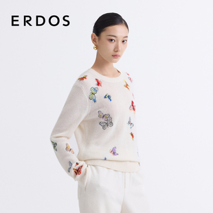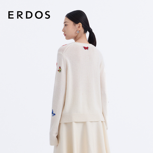 圆领刺绣宽松毛衣针织套衫 ERDOS 蝴蝶提花羊绒衫