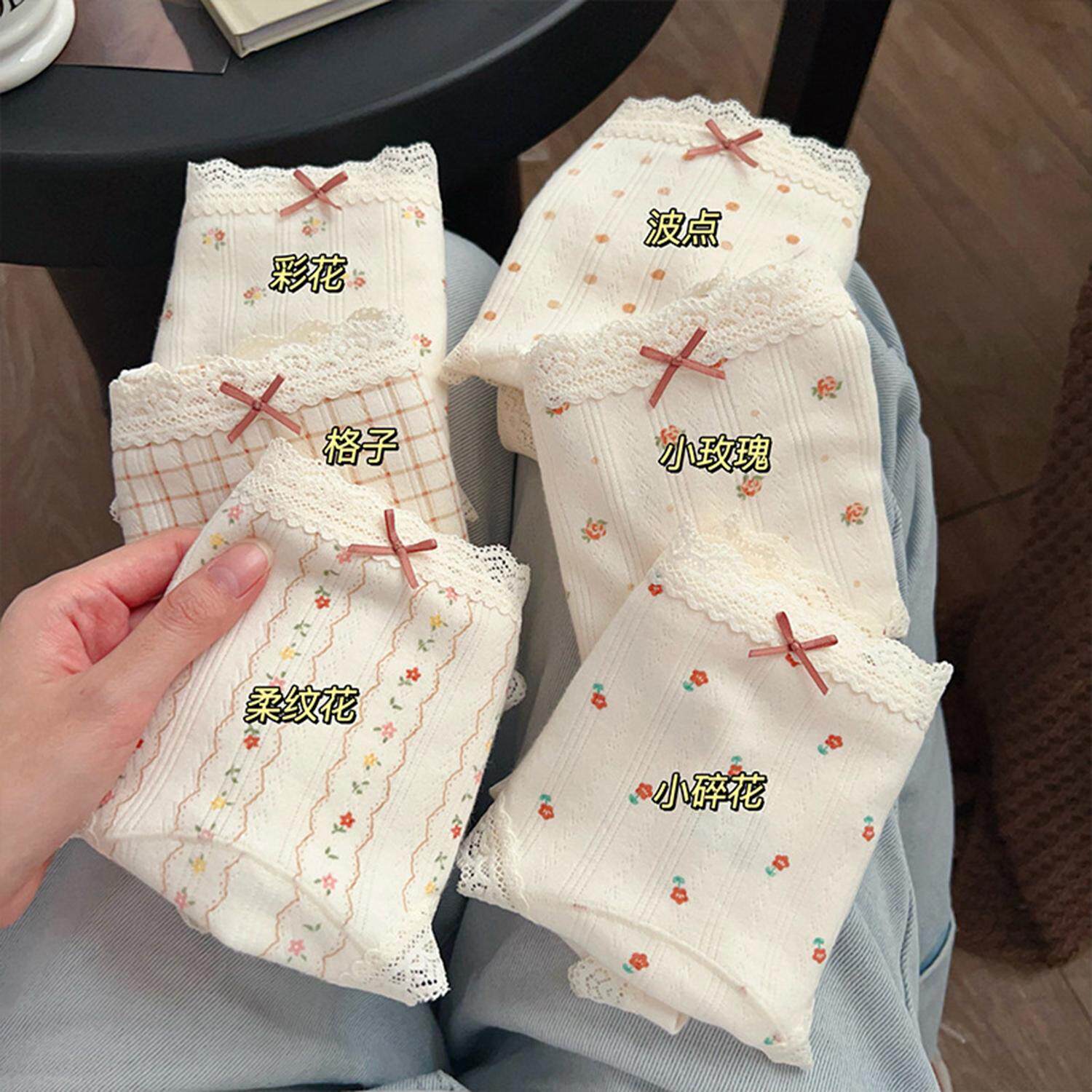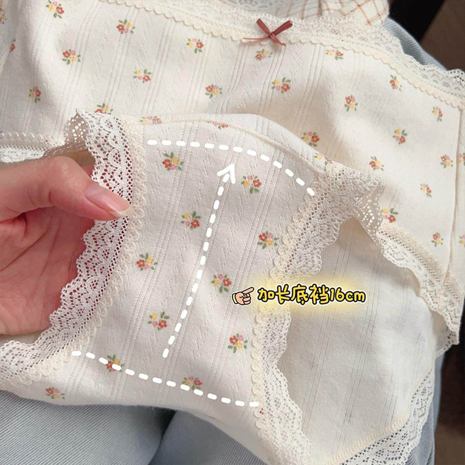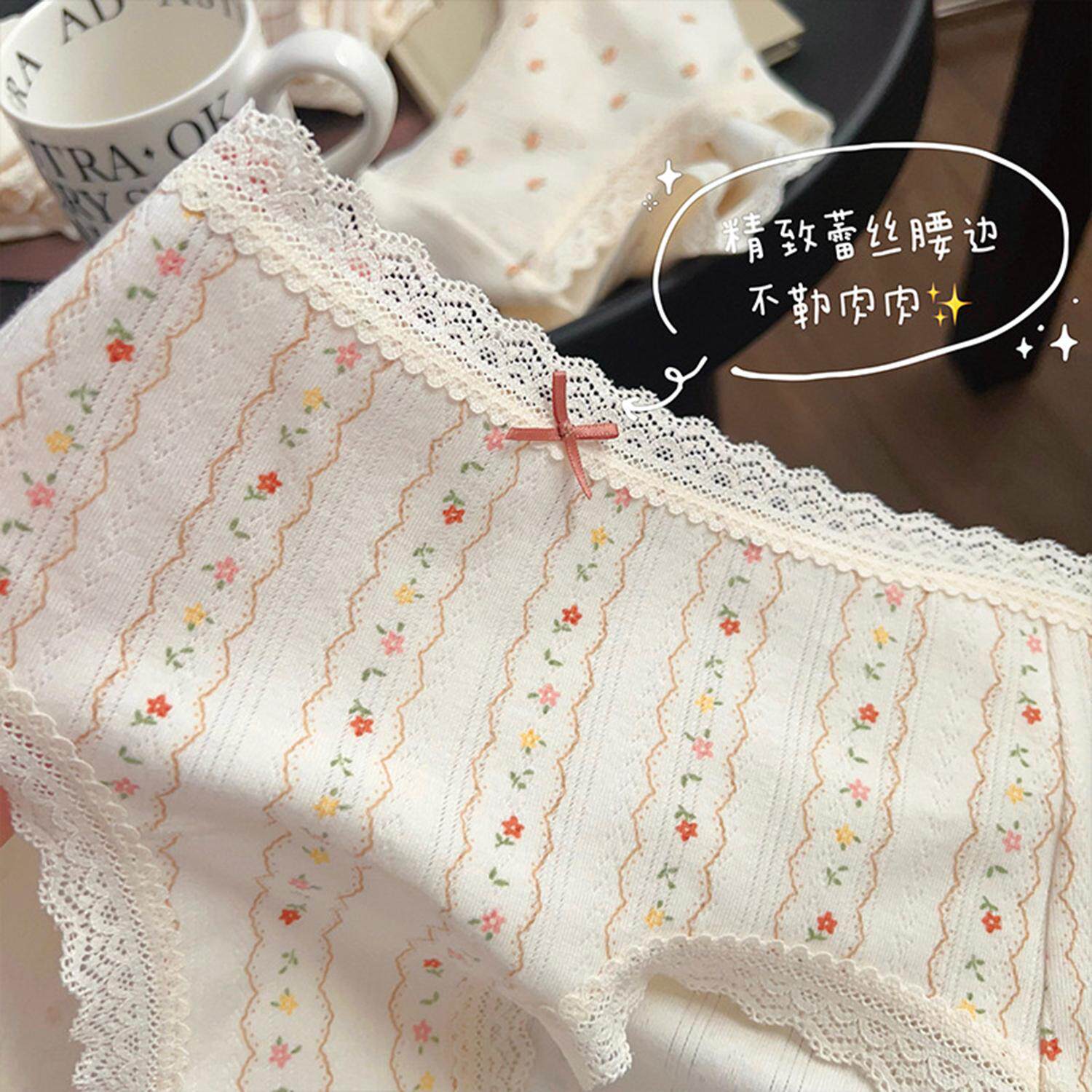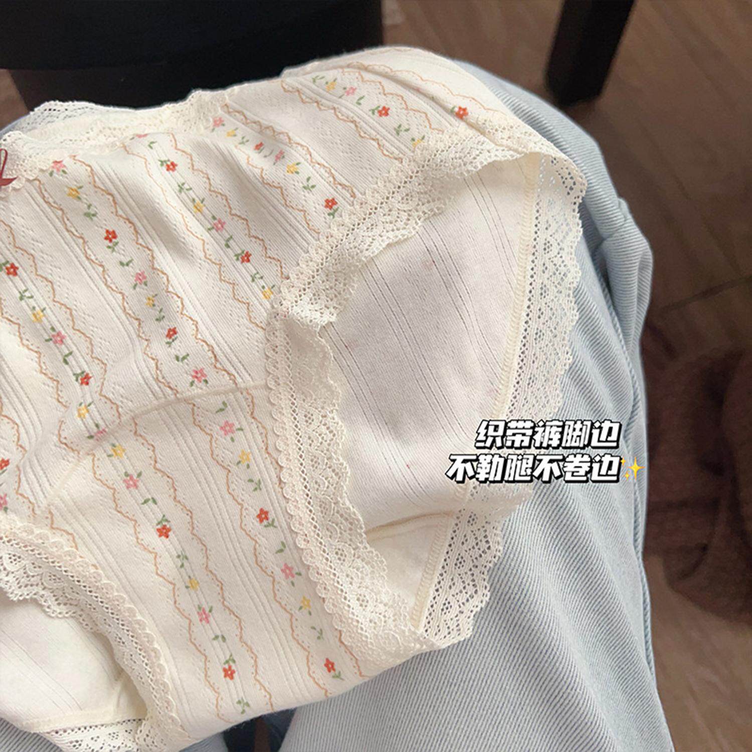 甜美少女风抑菌纯棉碎花蕾丝边奶油内裤 女 透气加长底裆中腰三角裤