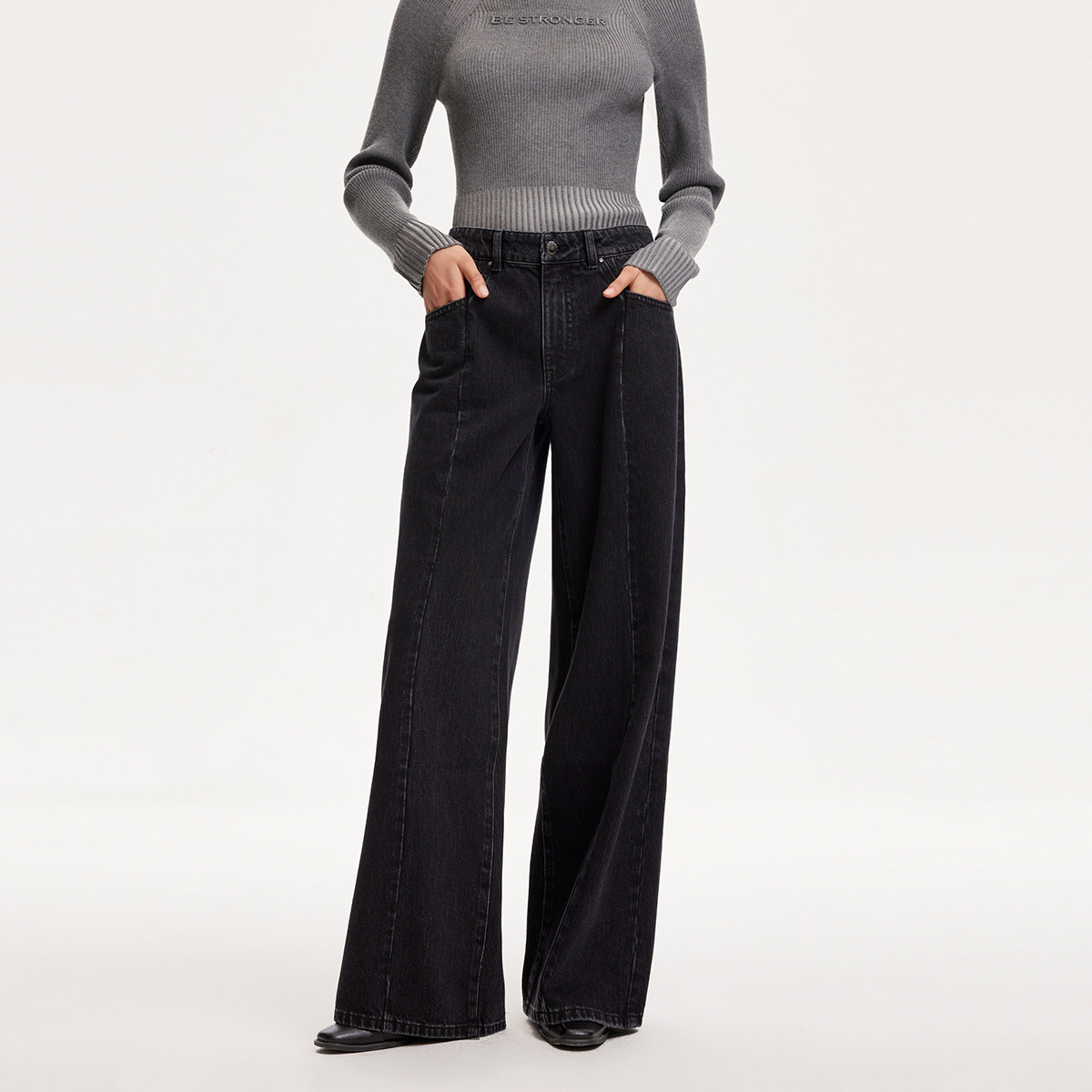 型缝线设计阔腿裤 女春夏LOOSE版 休闲 Moda牛仔裤 绫致Vero