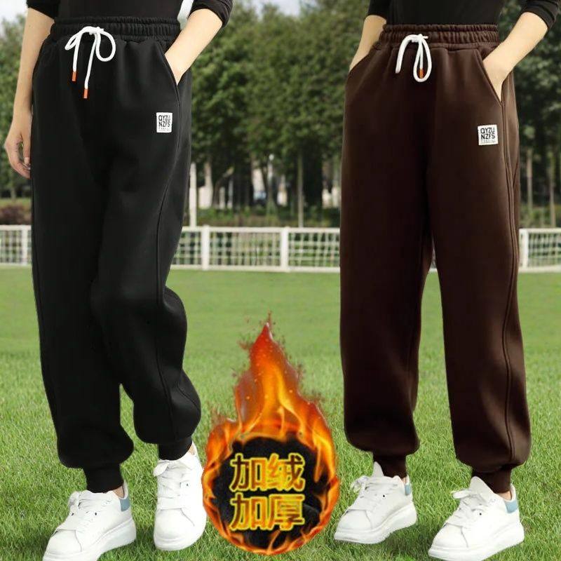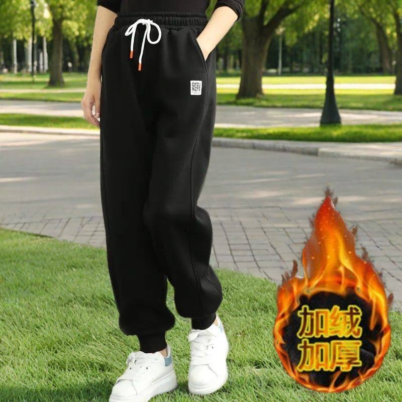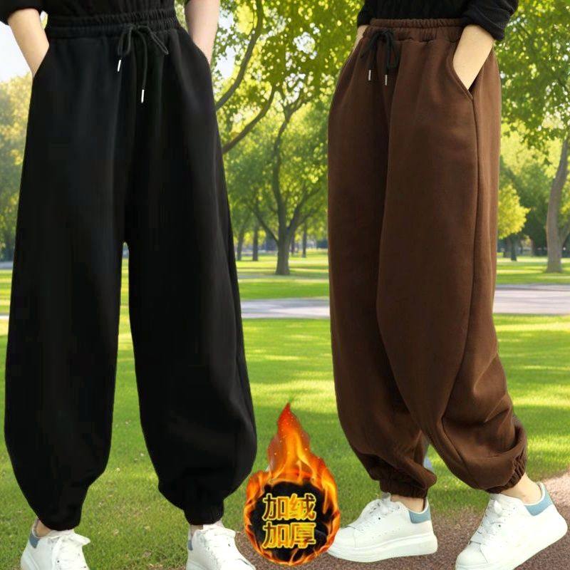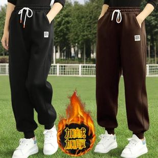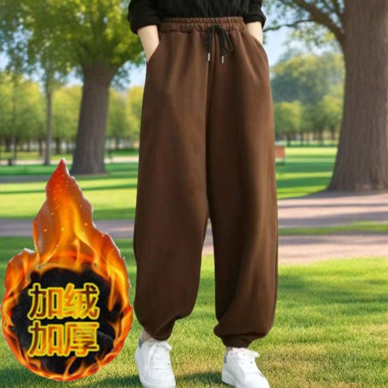 束脚宽松加绒加厚卫裤 显瘦运动裤 女2025冬季 松紧腰韩版 新款 此外