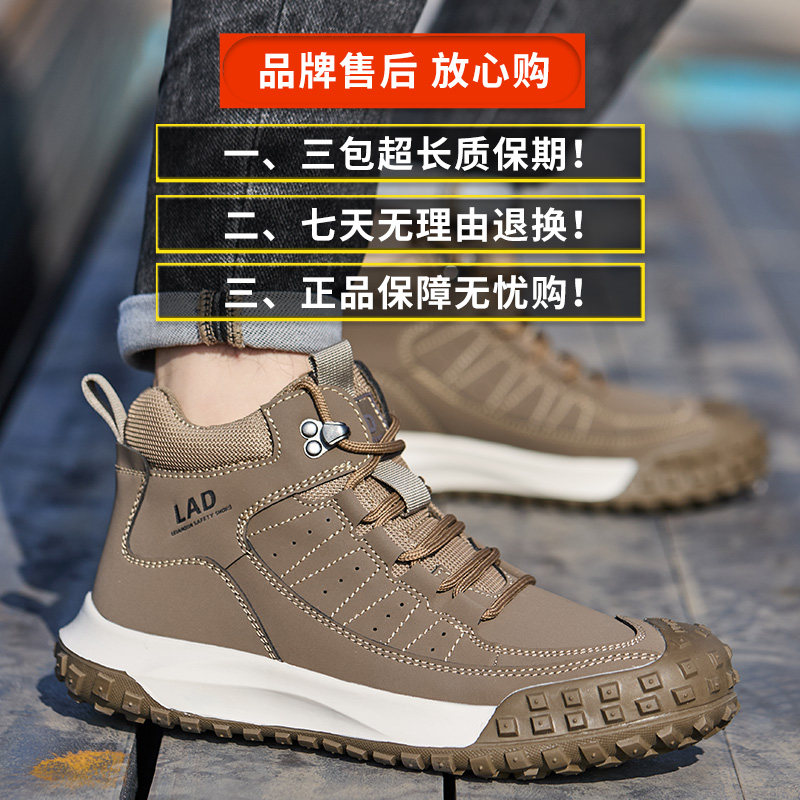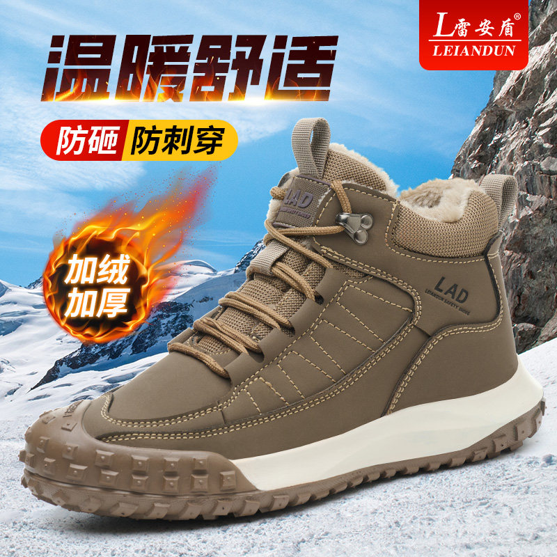钢头防砸防刺穿加绒保暖防寒工地安全工作棉鞋 高帮冬季 男士 劳保鞋
