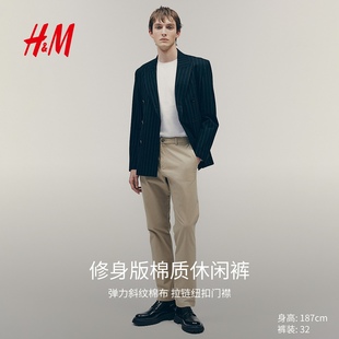 休闲裤 弹力通勤简约长裤 春季 合身版 1248348 老钱风休闲裤 HM男装