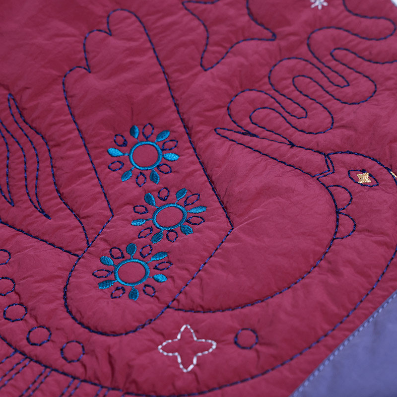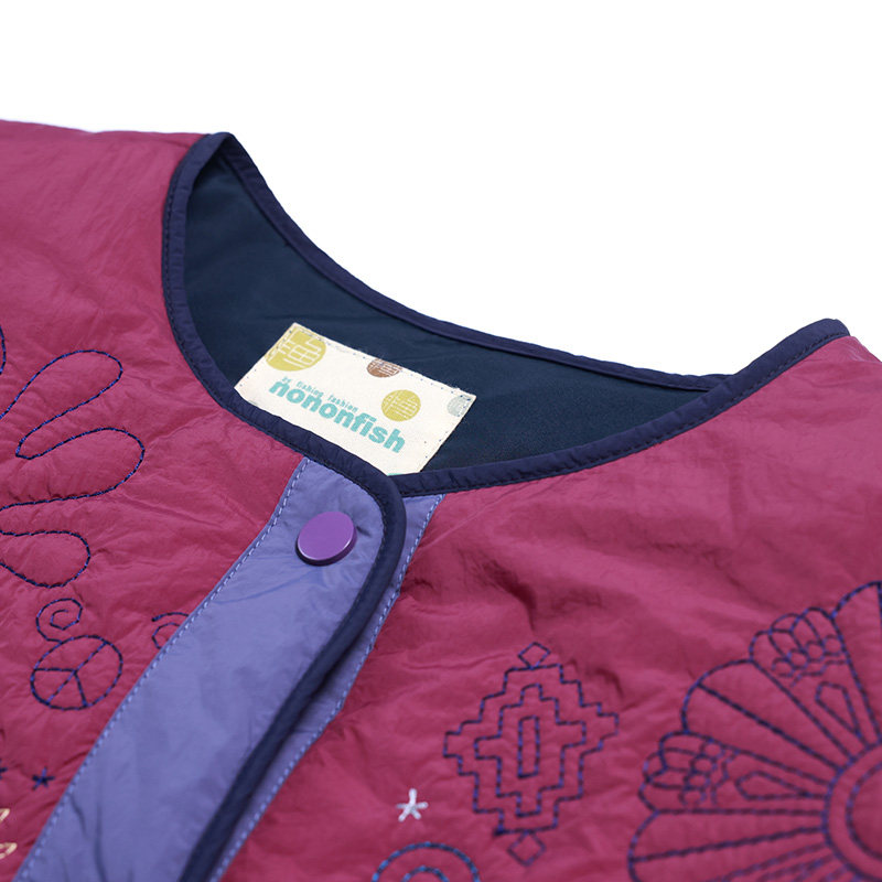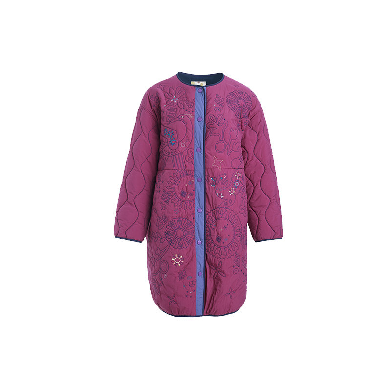 圆领休闲棉衣 拼接撞色棉服重工刺绣女装 非鱼秋冬新款 中长款