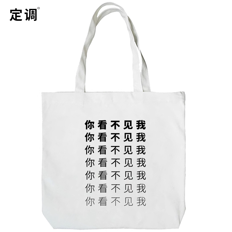 你看不见我透明隐身创意个性 帆布包手提袋 男女学生趣味文字纯棉