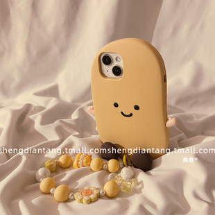可爱Jelly土豆公仔适用苹果16ProMax手机壳新款 15promax软硅胶保护套 iphone16立体卡通15创意14链条13女款