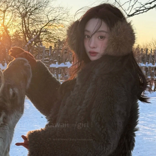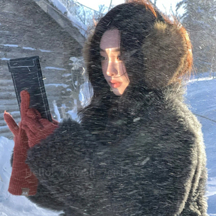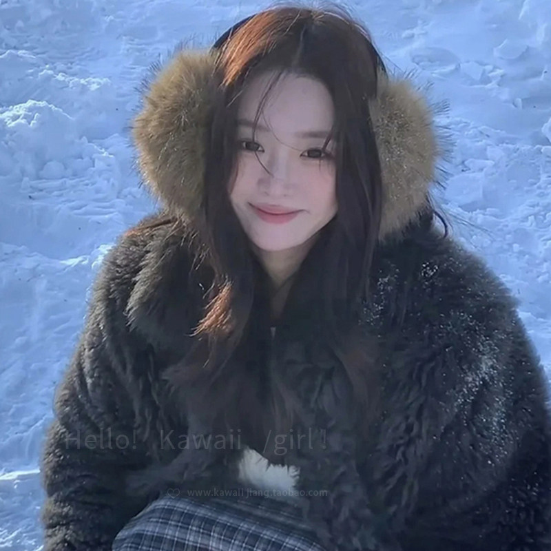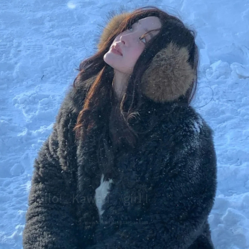 甜酷风y2k棕色仿貂毛耳罩毛绒冬季 雪景保暖耳包女骑行护耳套耳暖