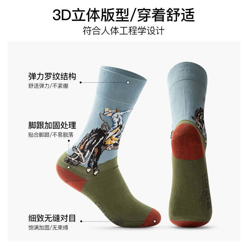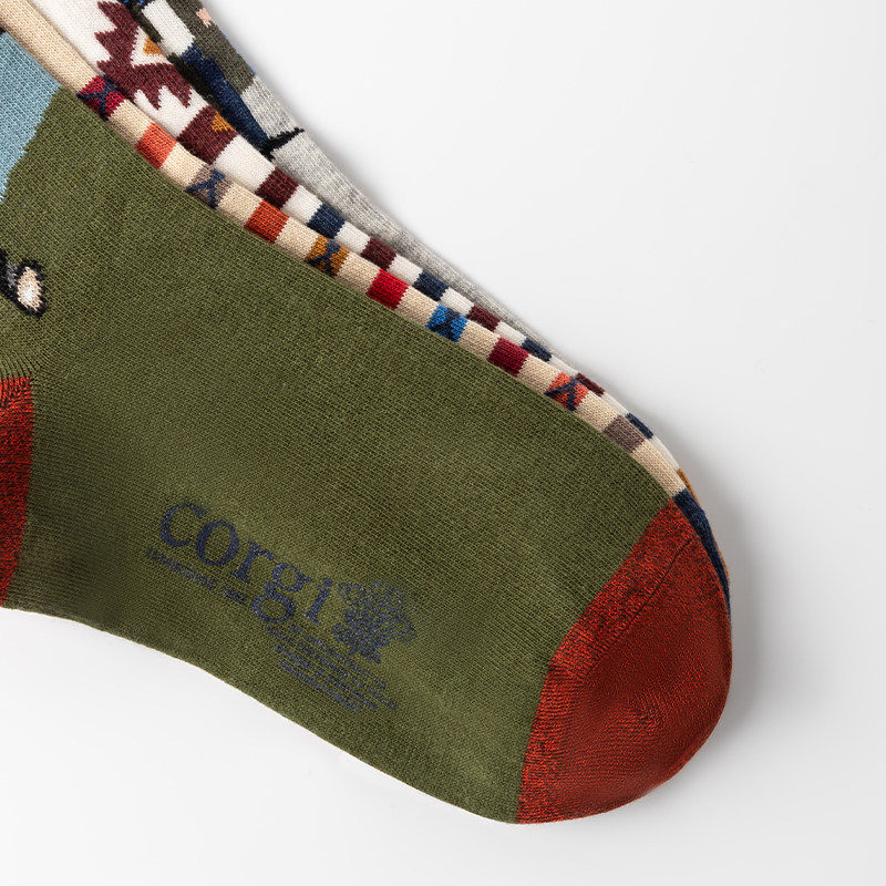 圣诞温馨 款 CORGI英国进口男士 袜子英伦印花西部牛仔中筒袜秋冬季