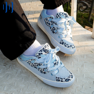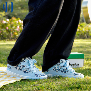 顽刻ollieskate面包鞋 冰蓝豹纹配色BAKE复古休闲男女国潮滑板鞋