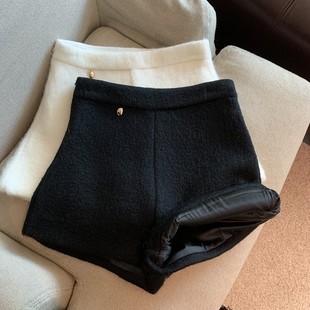 靴裤 配马丁靴直筒打底裤 女秋冬外穿休闲三分裤 白色小香风毛呢短裤